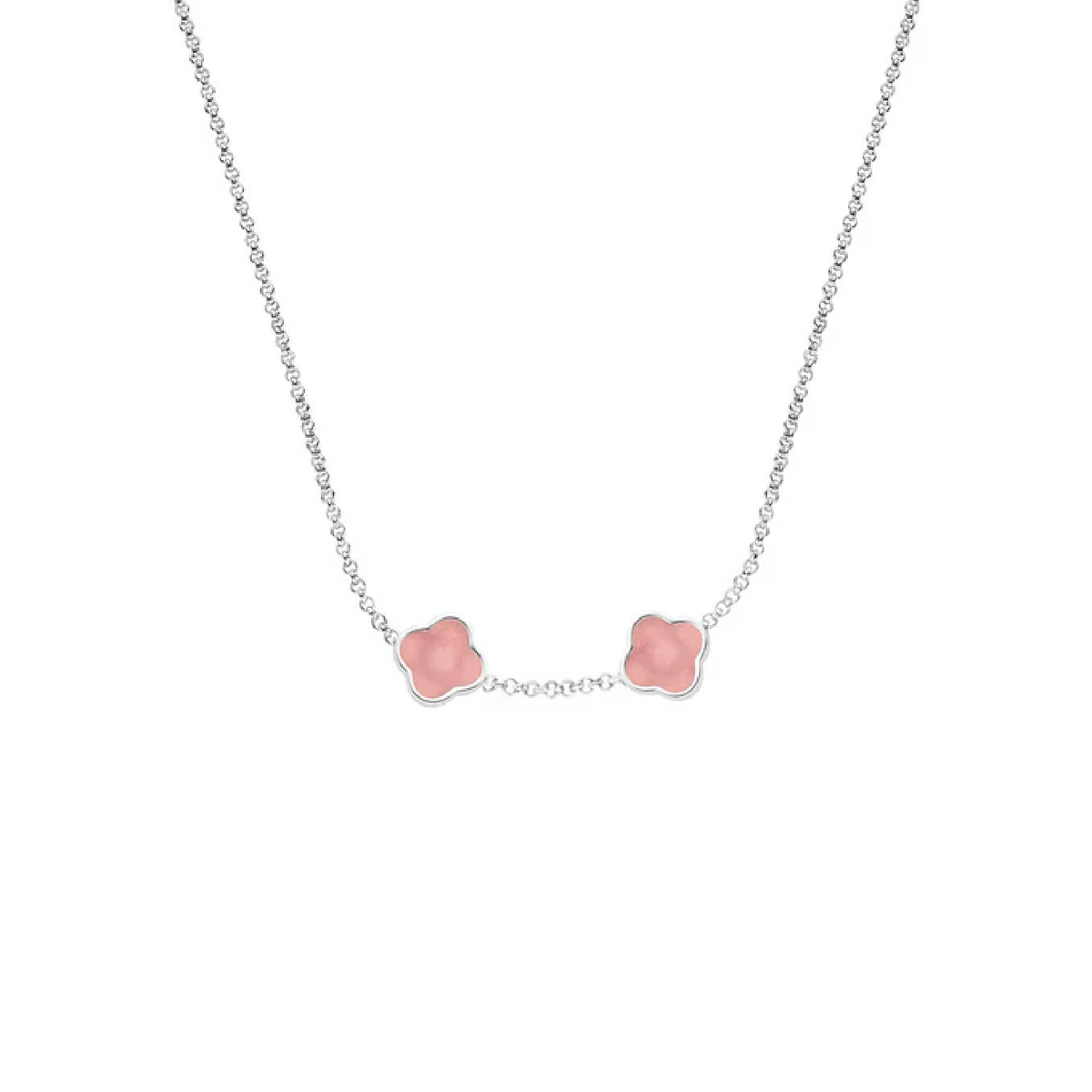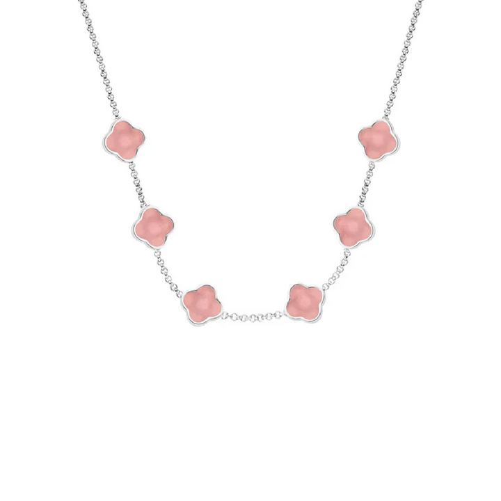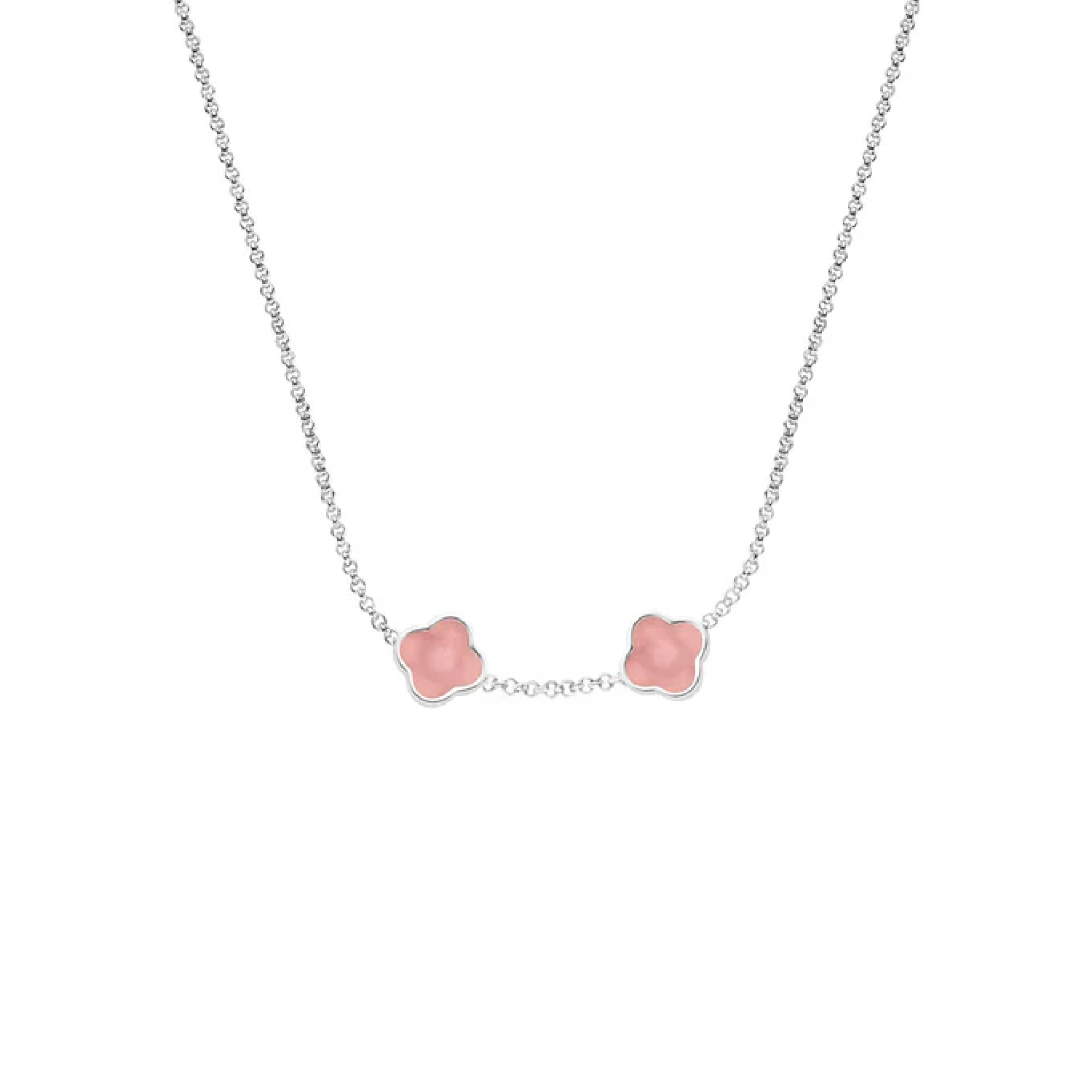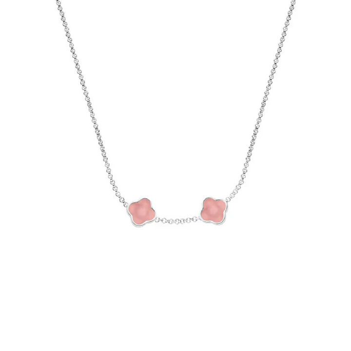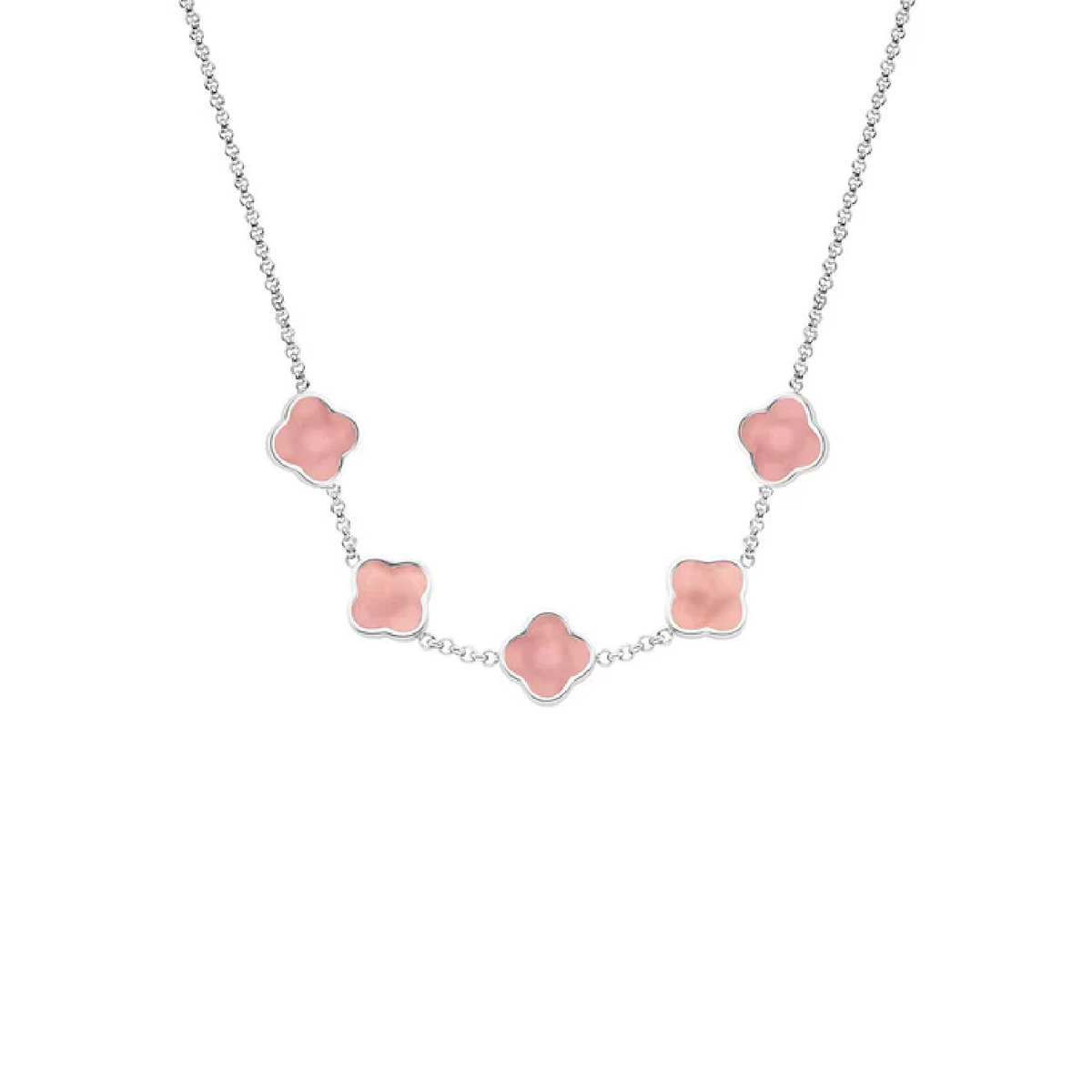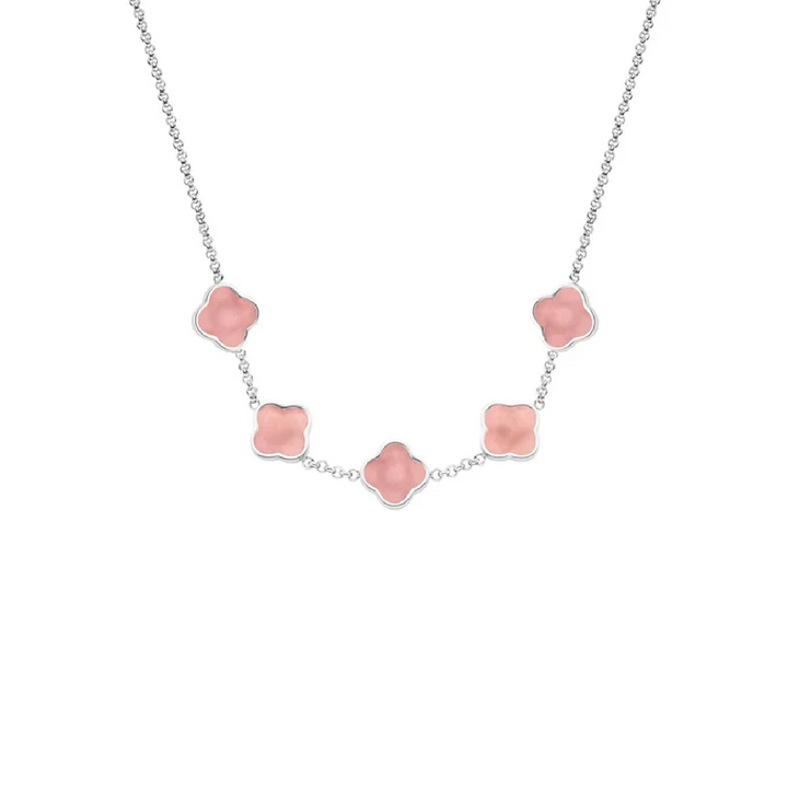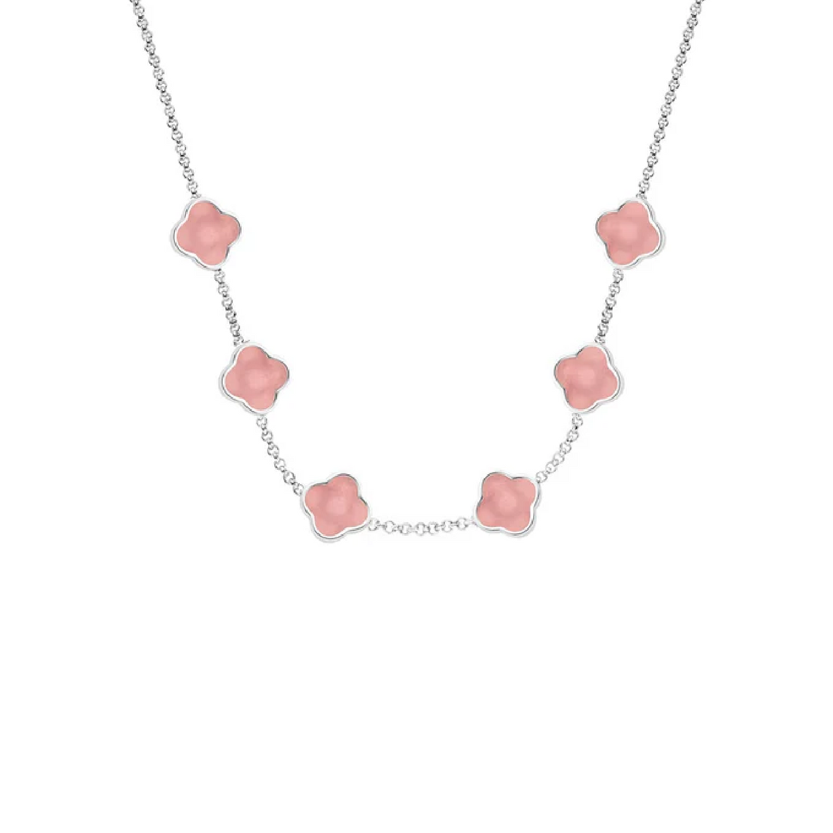 Rose Quartz Clover Custom Name Necklace (Silver)