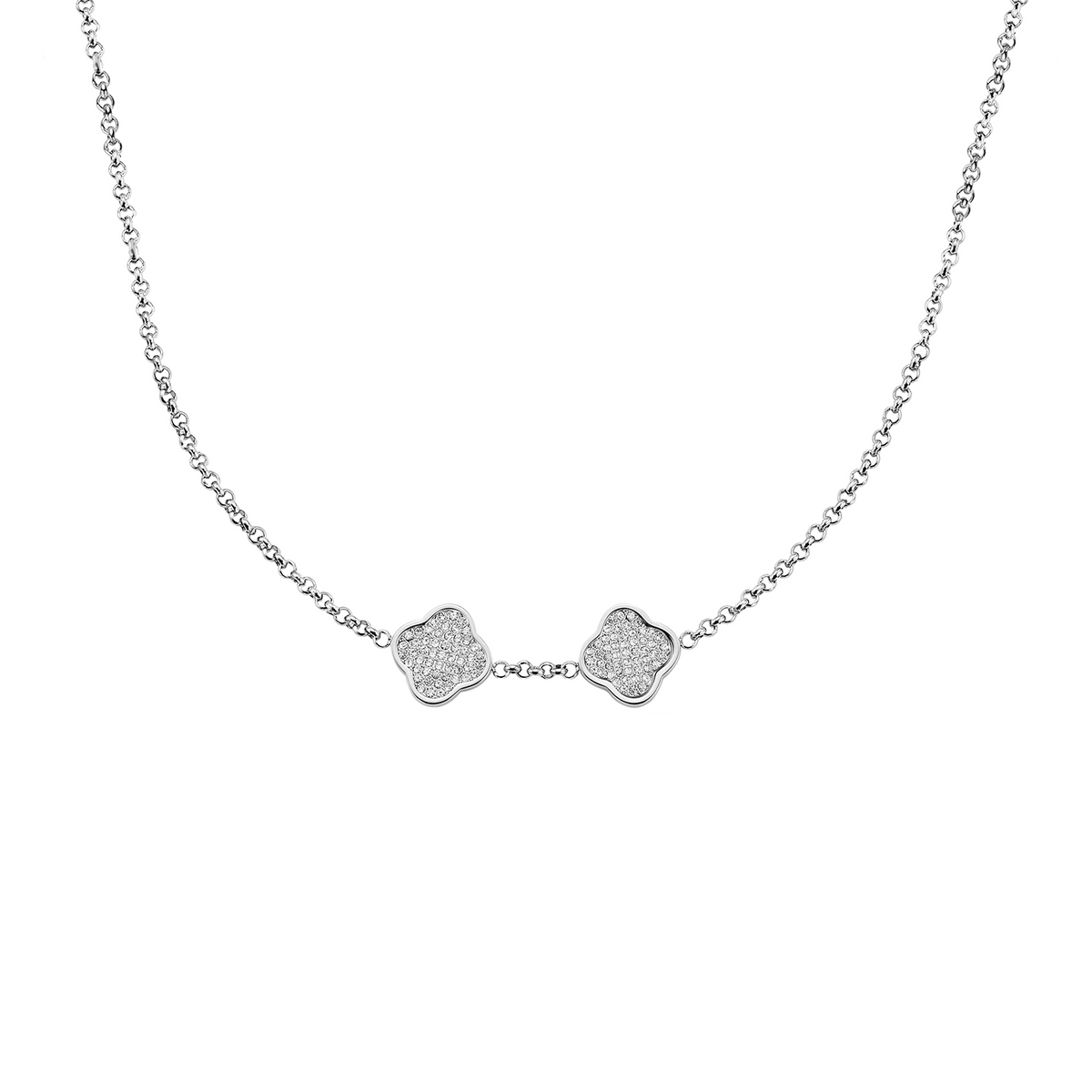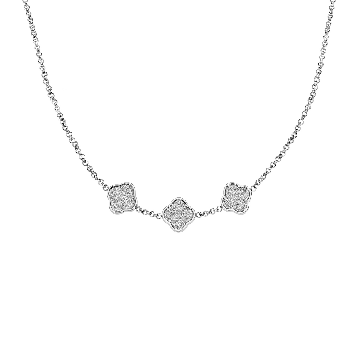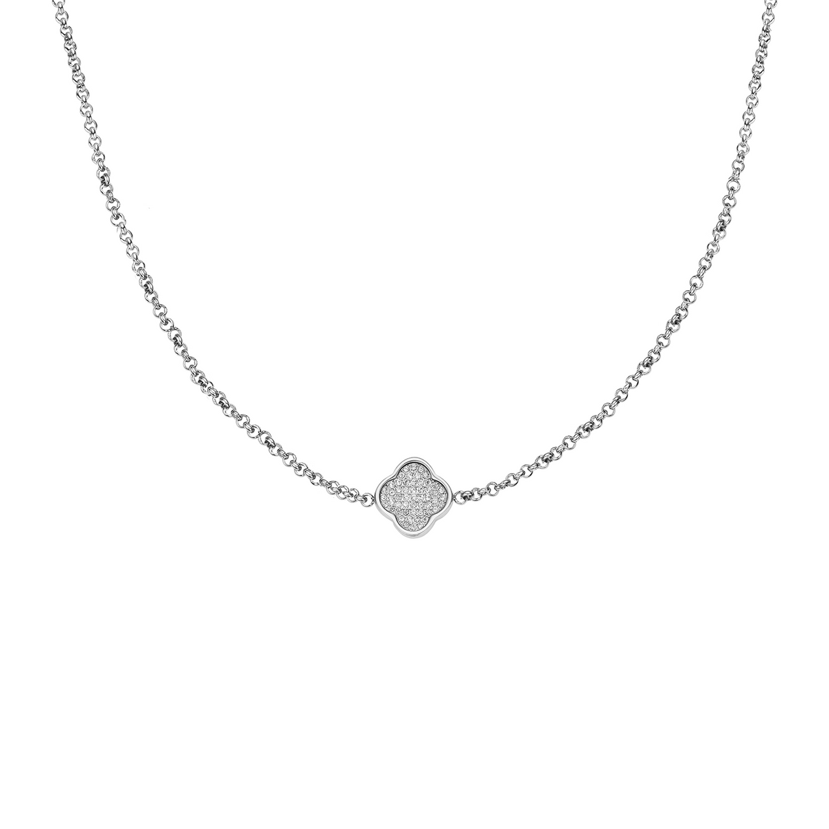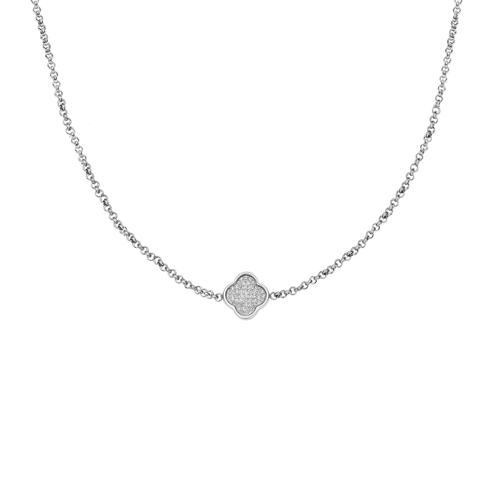 Handcrafted in polished stainless steel with a 12mm clover. It is available in three chain lengths: 14-16in, 16-18in, and 18-20in.