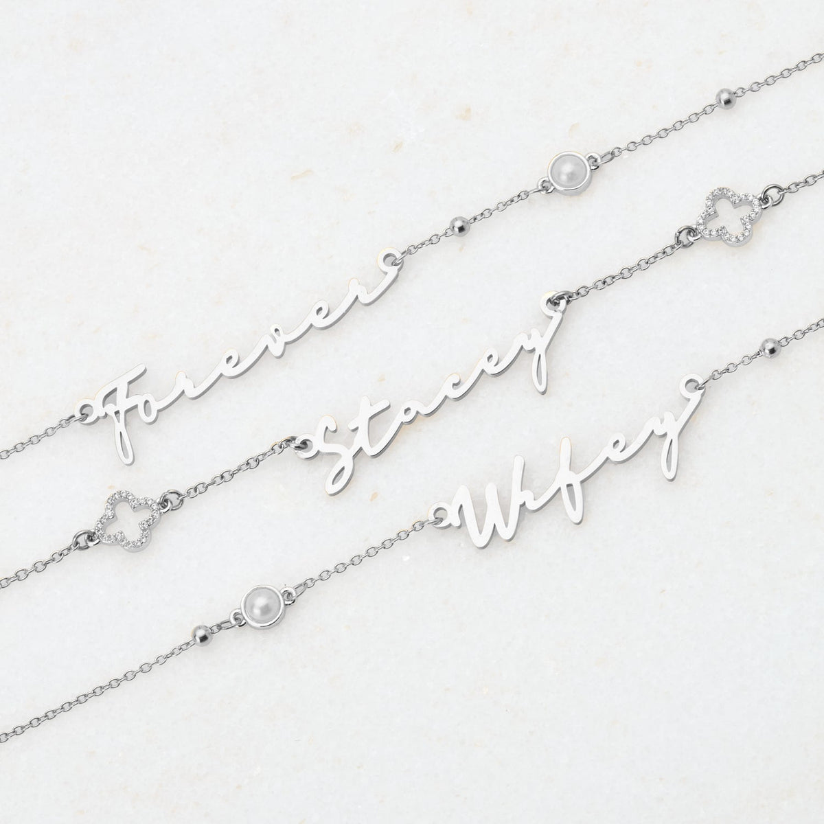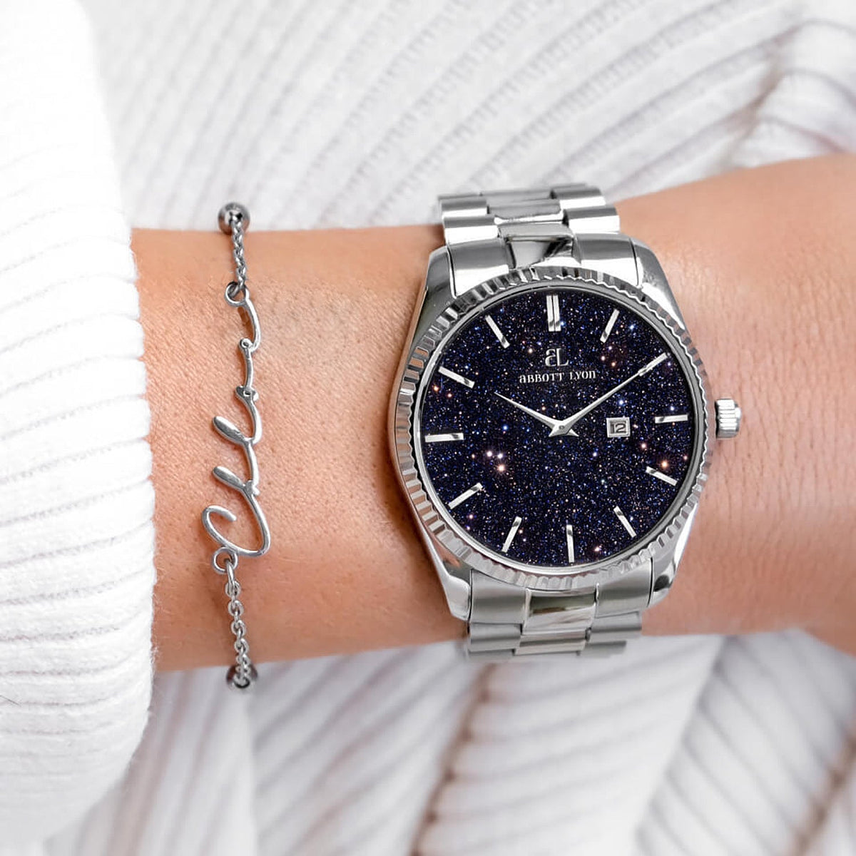 This Signature Name Bracelet by Abbott Lyon is part of the brand's iconic Name Jewelry collection, which allows you to create the ultimate signature accessory or gift. These exclusive pieces are handmade to order and totally unique. You can play with up to 12 characters and select your favorite chain to create a bespoke silver bracelet that's all about you or a special someone.