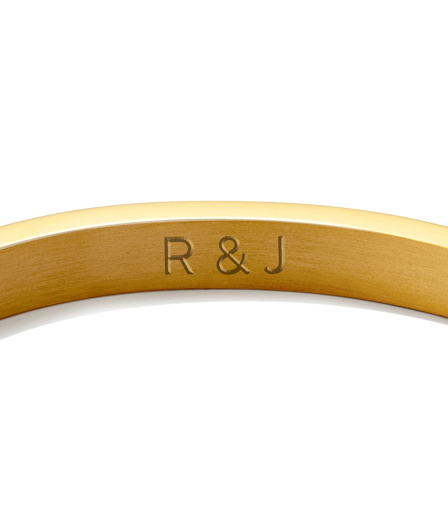 18k gold plated stainless steel with crystal heart detail. Width 7 mm. Available in sizes 165 mm (S/M) and 180 mm (M/L). Made with over 60% recycled materials.