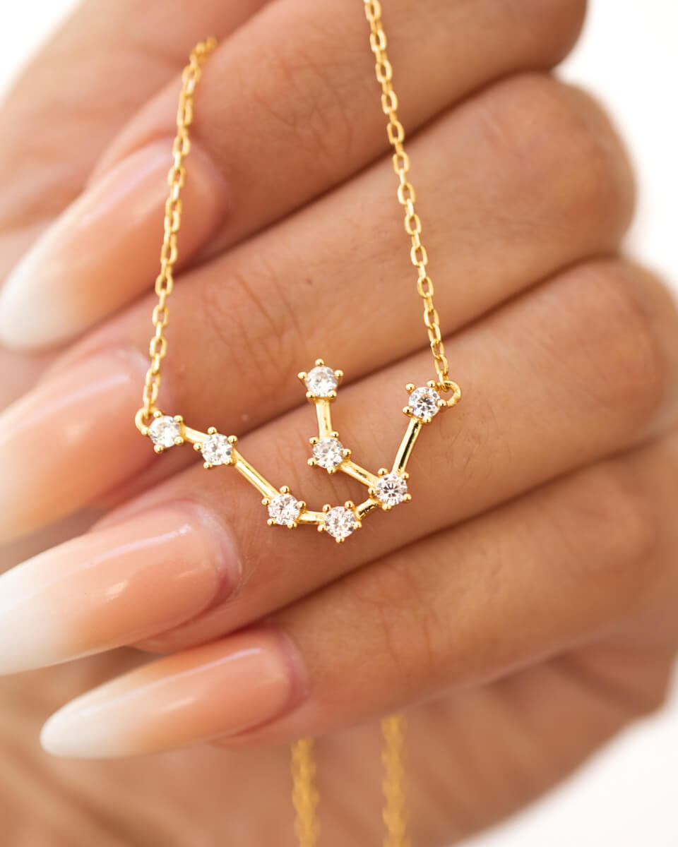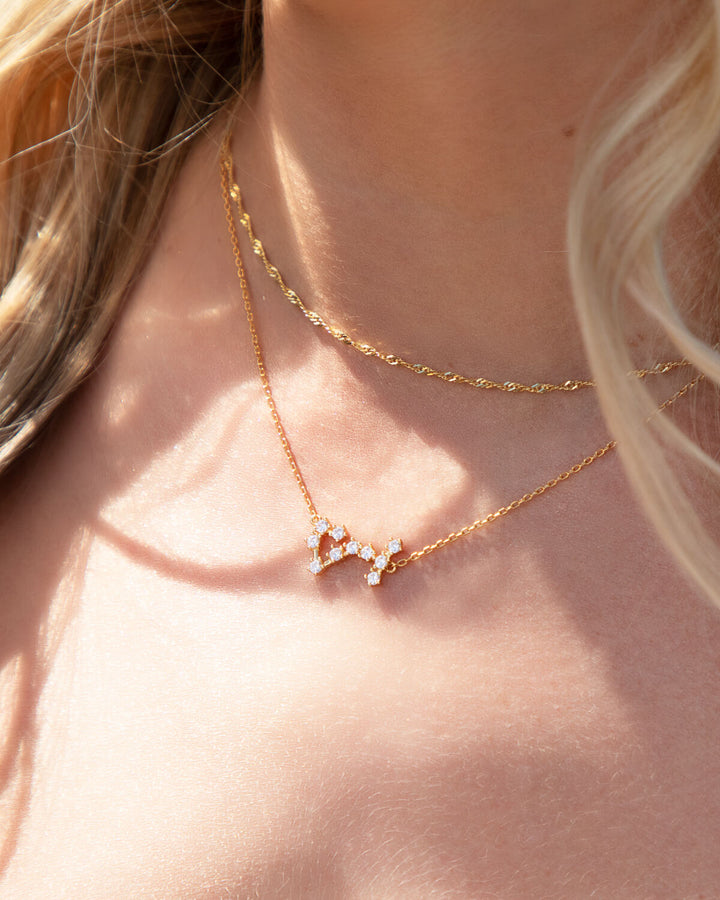 Sterling Silver Crystal Zodiac Necklace (Gold)
