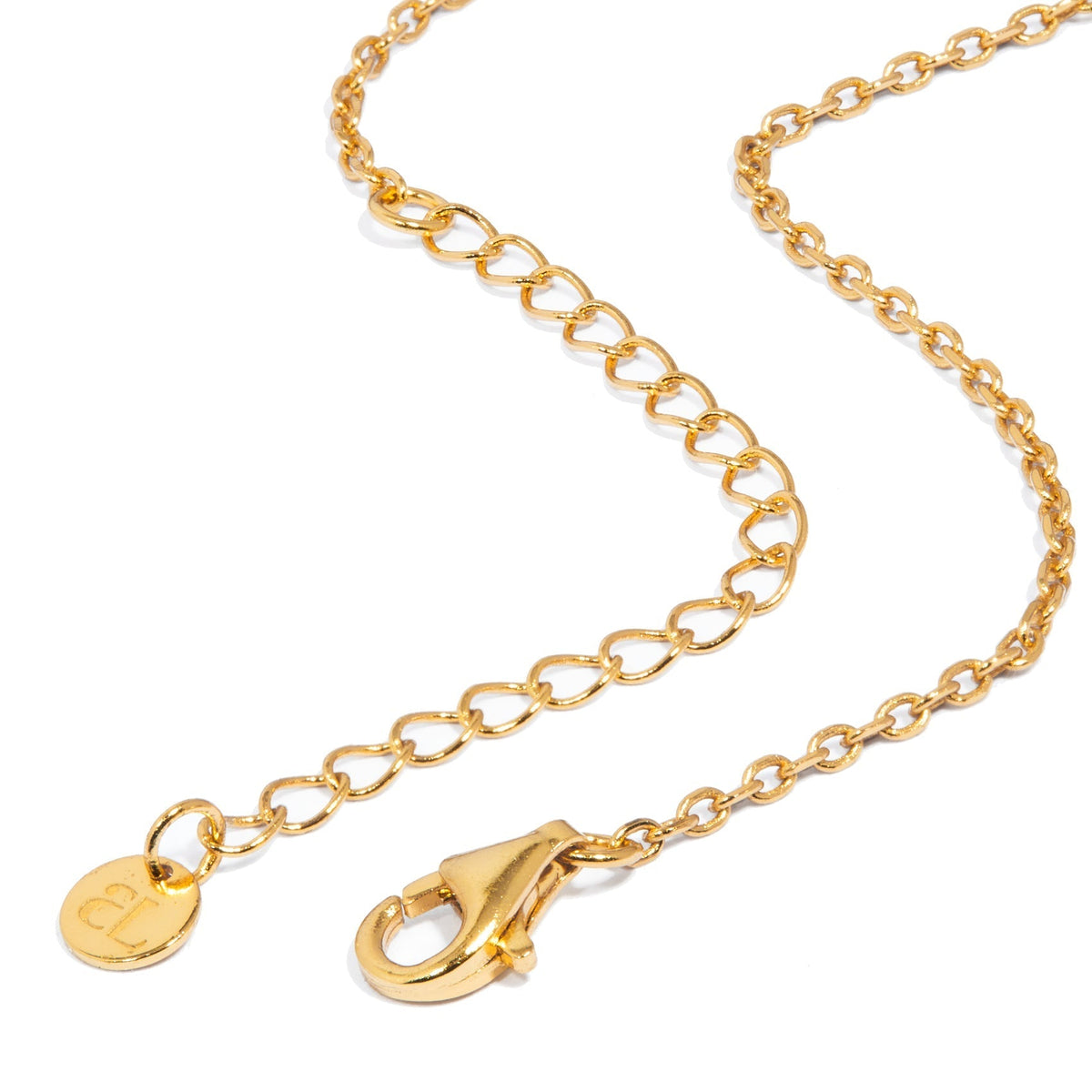 18k gold plated recycled sterling silver with cubic zirconia. Adjustable chain length 16–18 in. Lobster clasp with extender. Made with over 90% recycled sterling silver.