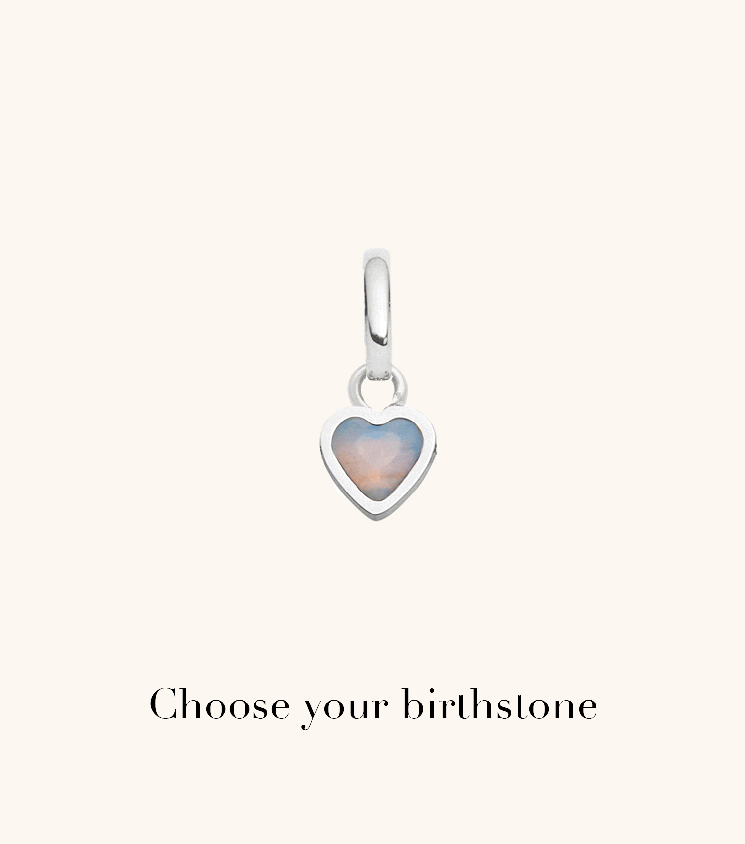 This Stories Mini Heart Birthstone Pendant in silver by Abbott Lyon is a dainty charm that balances sentiment with sparkle. With its crystal-set heart design, it’s perfect for gifting or wearing as a reminder of love and individuality.