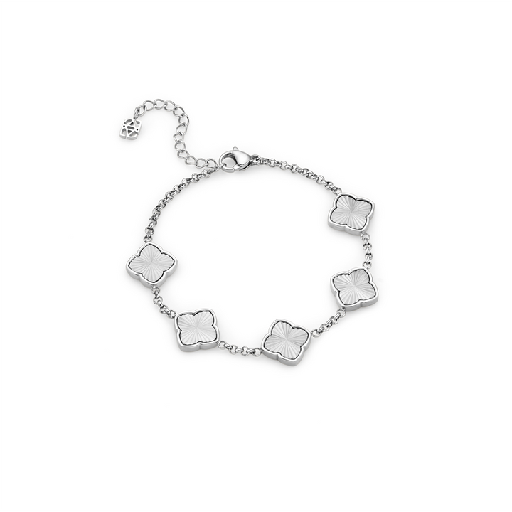 This Textured Multi Clover Bracelet in silver by Abbott Lyon brings luminous dimension to a clean, everyday silhouette. Each ridged clover adds a glint of light, creating a bracelet that’s subtle yet special.