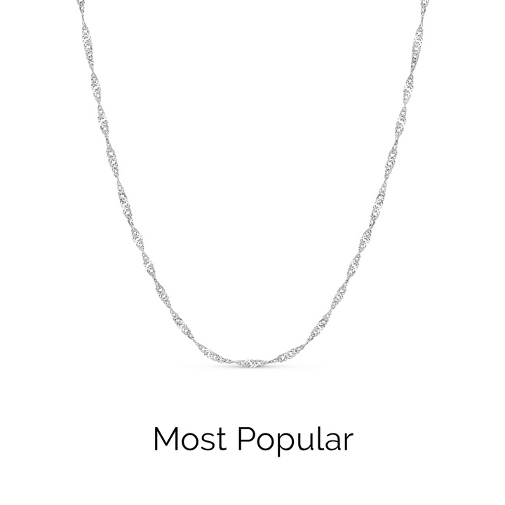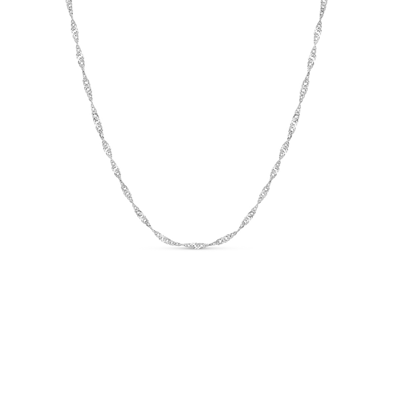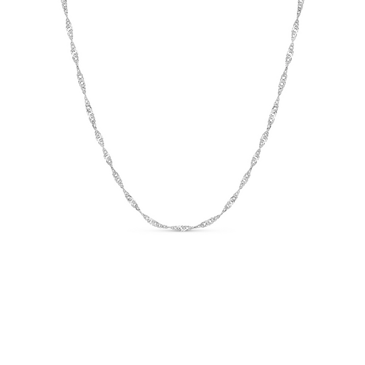 This Twisted Chain Necklace in silver by Abbott Lyon offers the same refined silhouette with polished silver plating. Its subtle twist makes it ideal for layering or wearing as a minimal everyday piece.