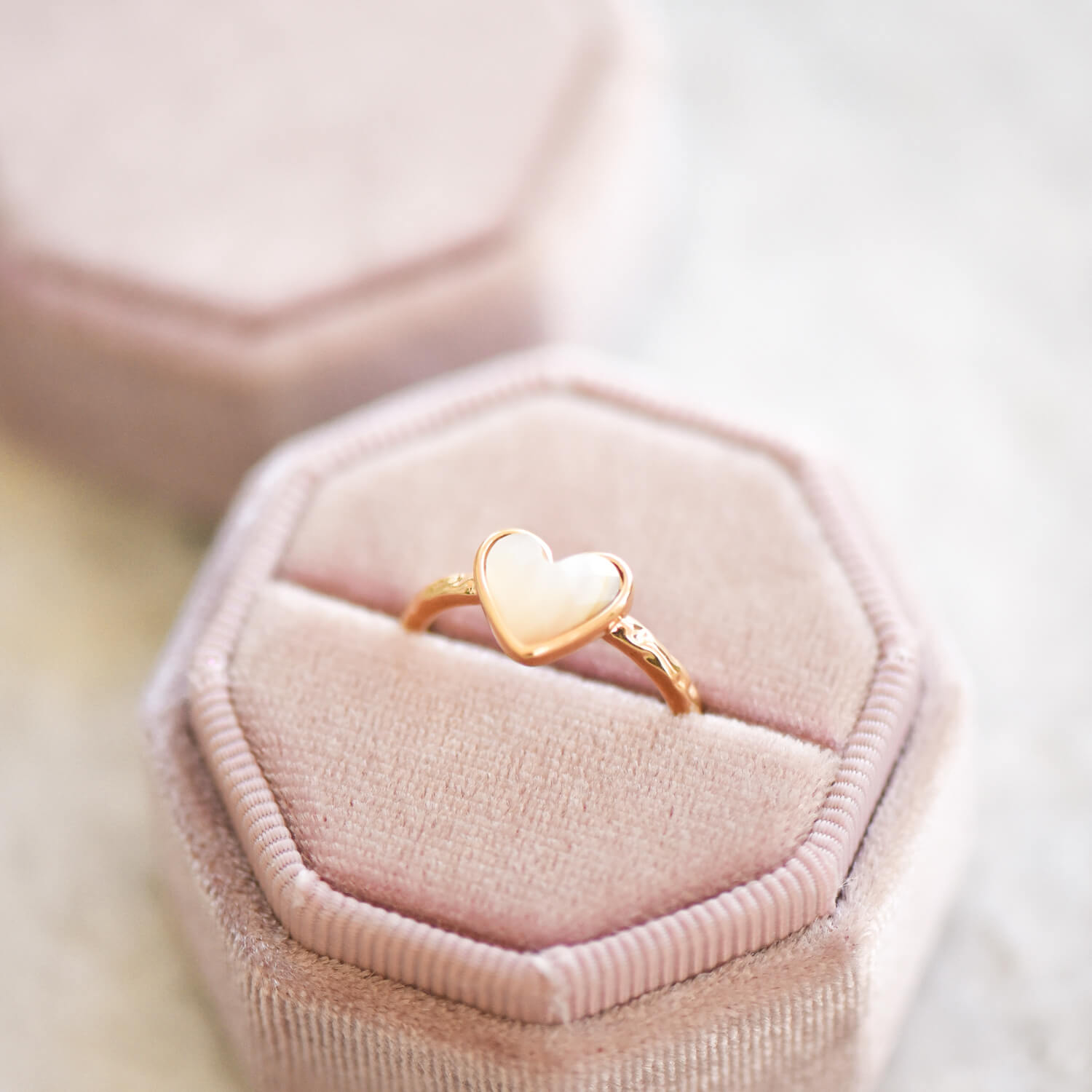 This White Quartz Heart Ring in gold by Abbott Lyon features a moonstone-effect quartz heart that symbolizes love, protection, and hope. A meaningful ring to wear solo or stacked for added impact.