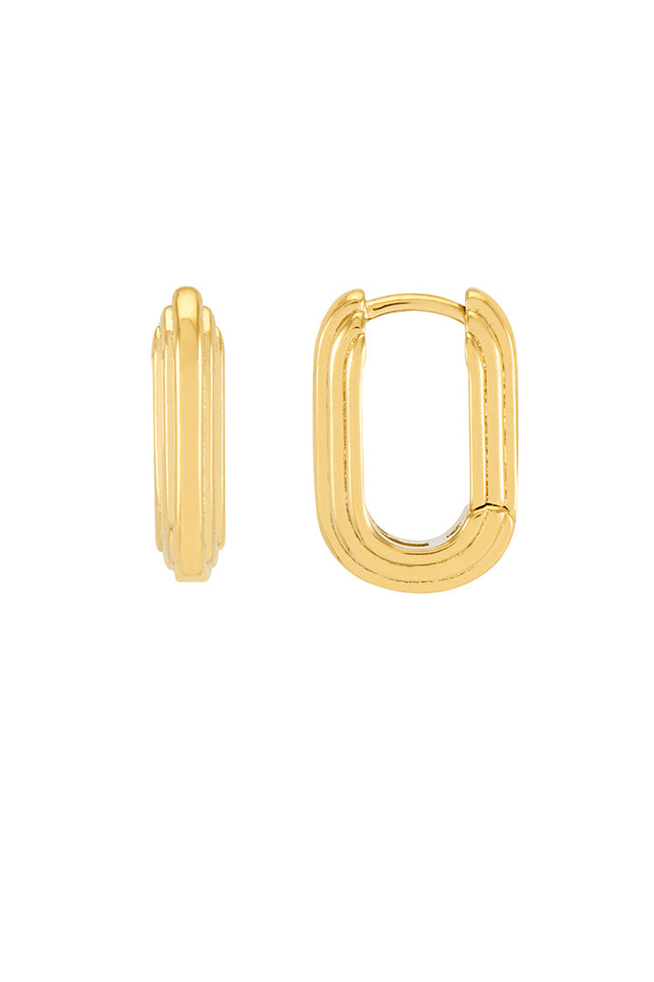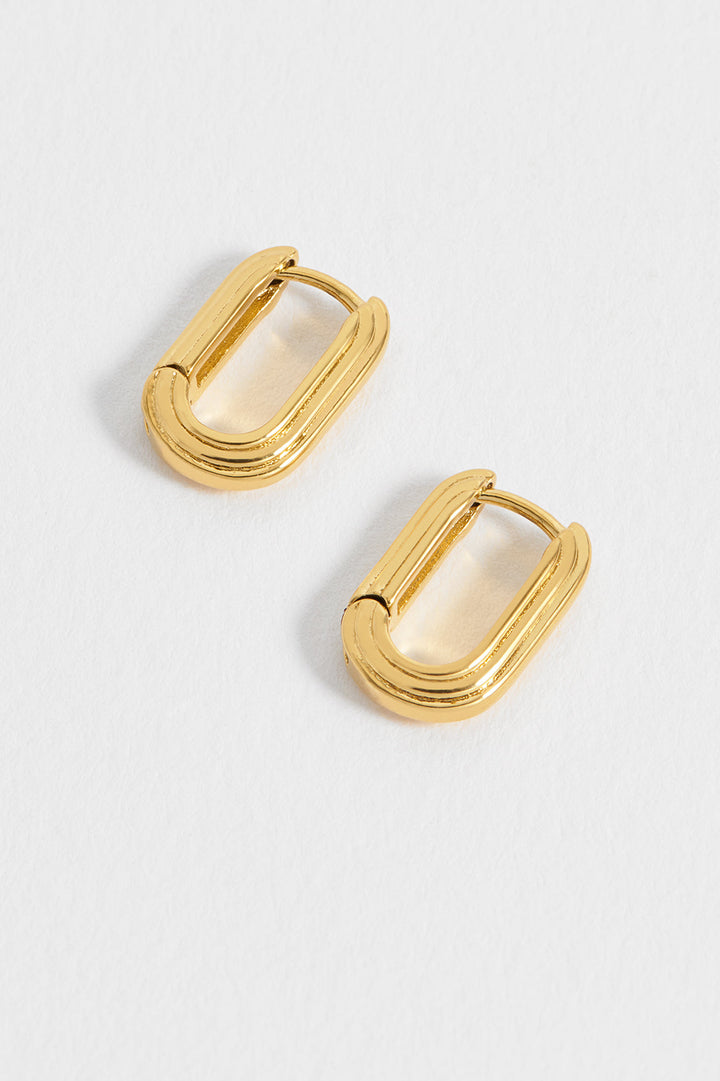 These hoops are crafted from metal with a PVD coating. Each earring measures 14 x 10mm.