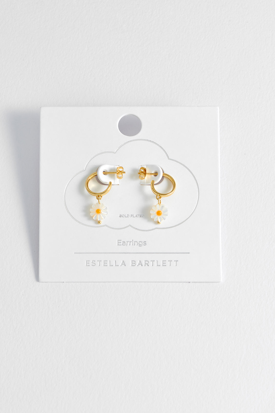 These Flower Shell Hoop Earrings by Estella Bartlett bring a subtle burst of natural beauty to your look. The delicate, flower-shaped shell charm hangs from a sleek gold hoop, creating a hint of floral elegance. This is a minimalist yet charming piece that’s perfect for adding a touch of nature-inspired beauty to your everyday style.