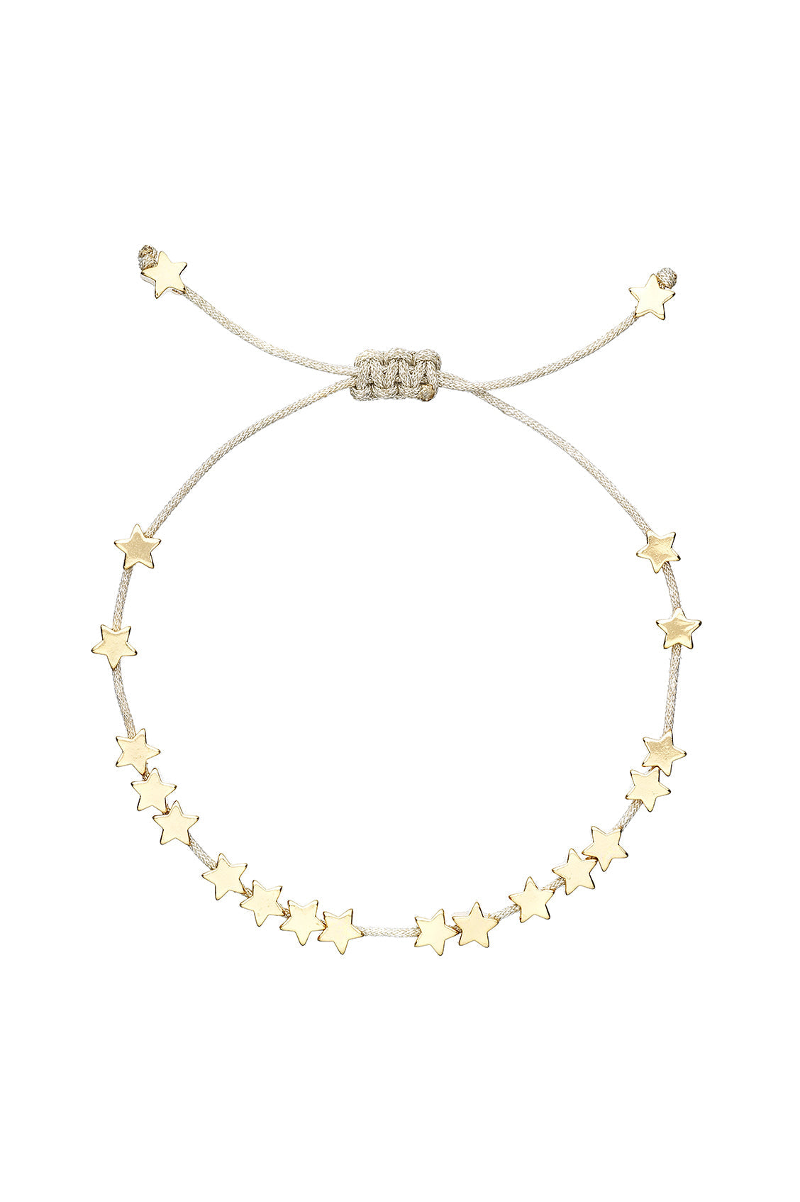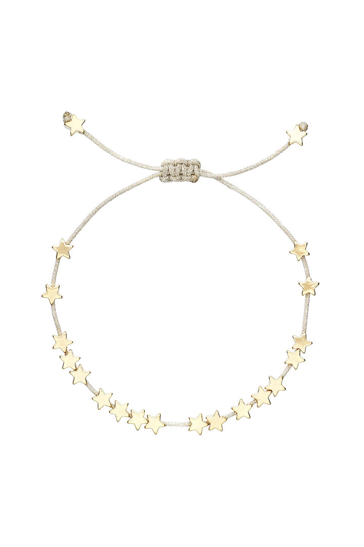 Crafted with a metallic silver cord and gold-plated stars. The chain measures 20.8cm with an adjustable slider, and the pendant measures 0.2x0.2cm.