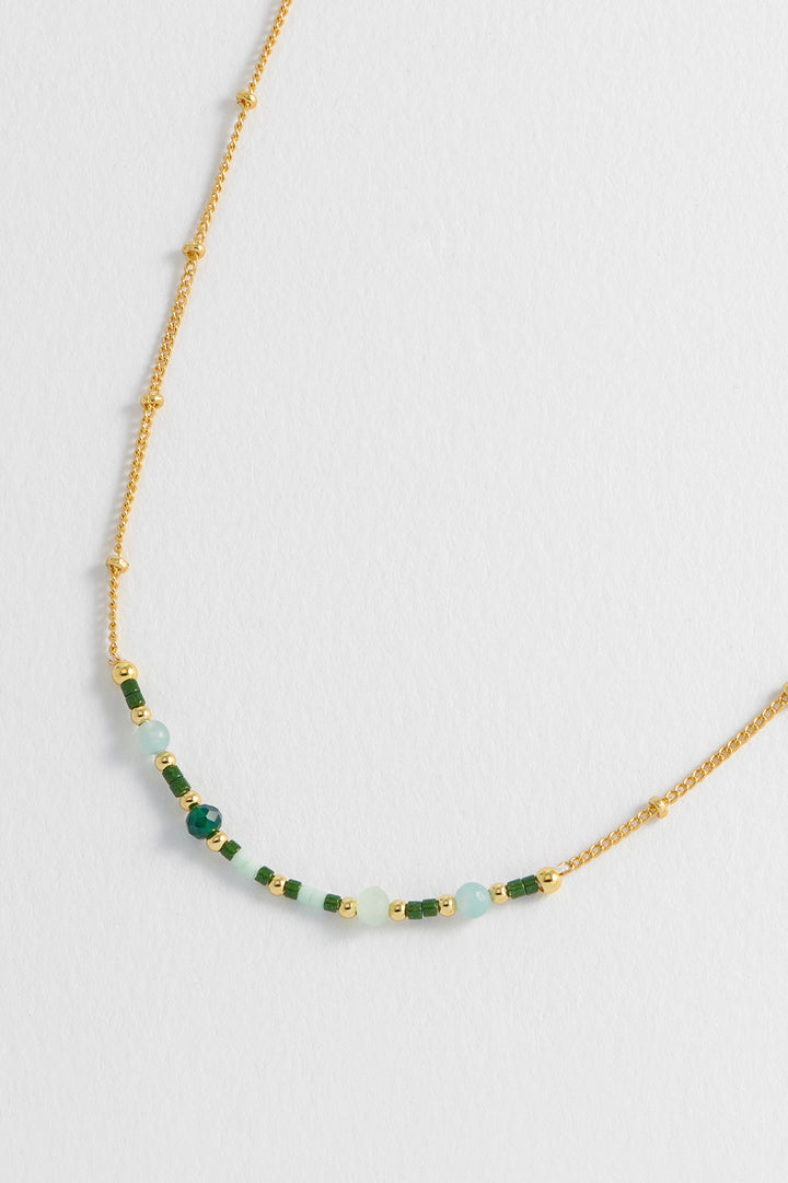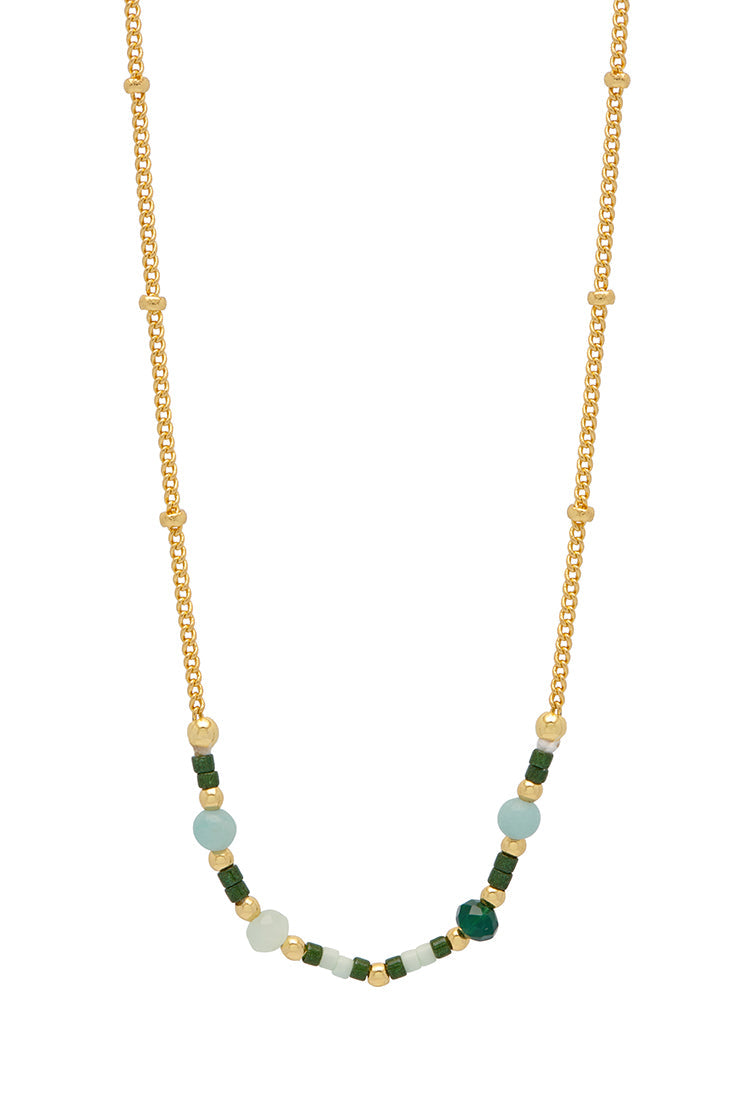 Mini Green Beaded Chain Necklace