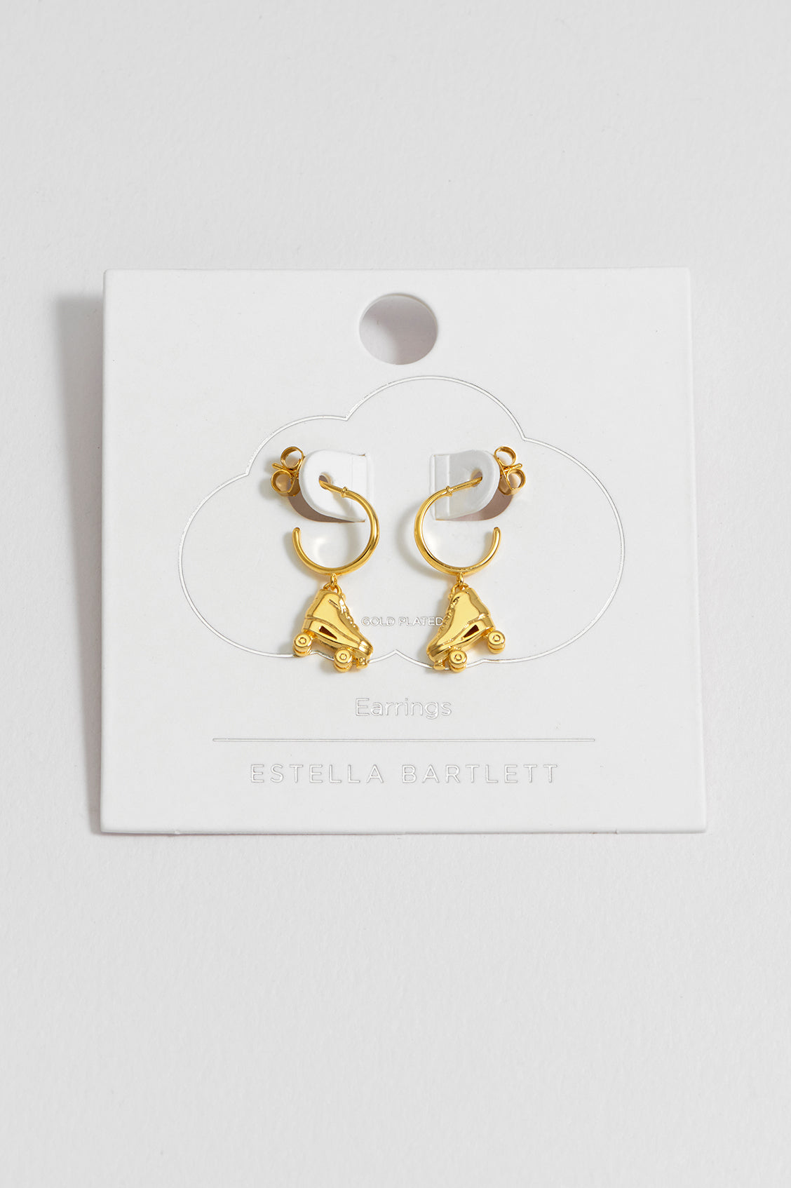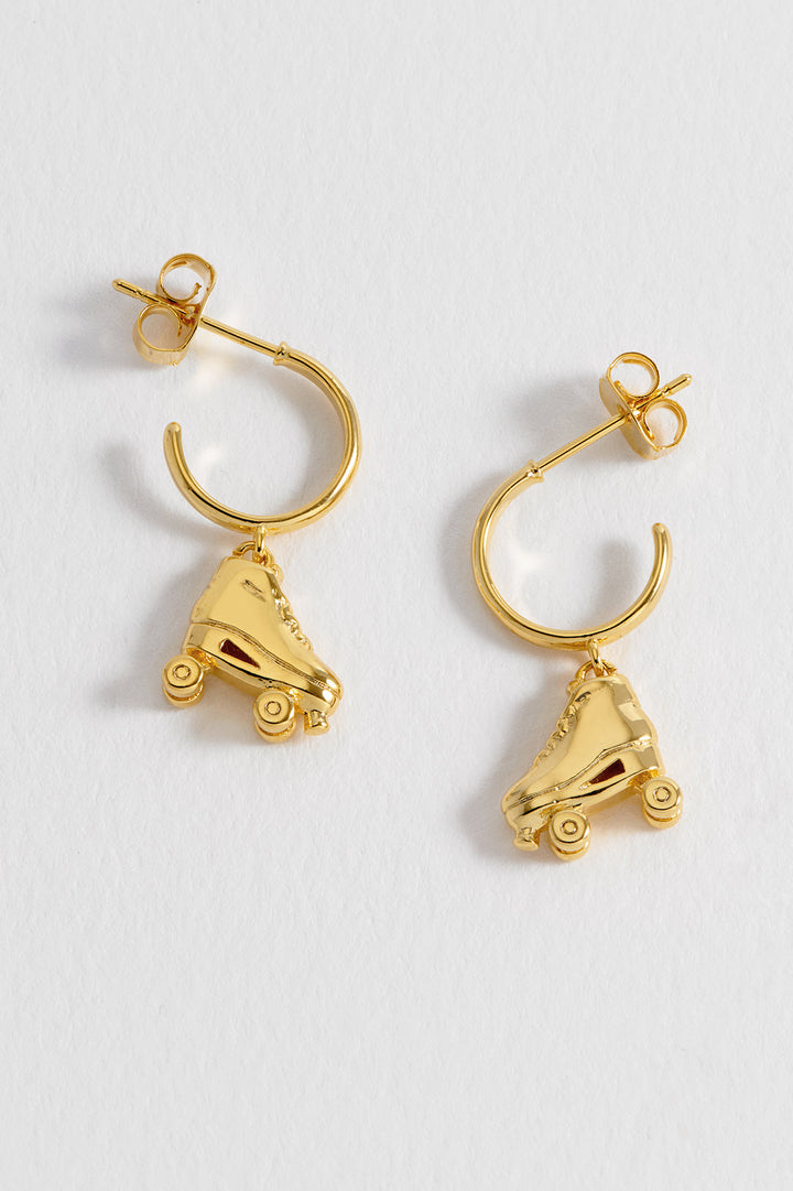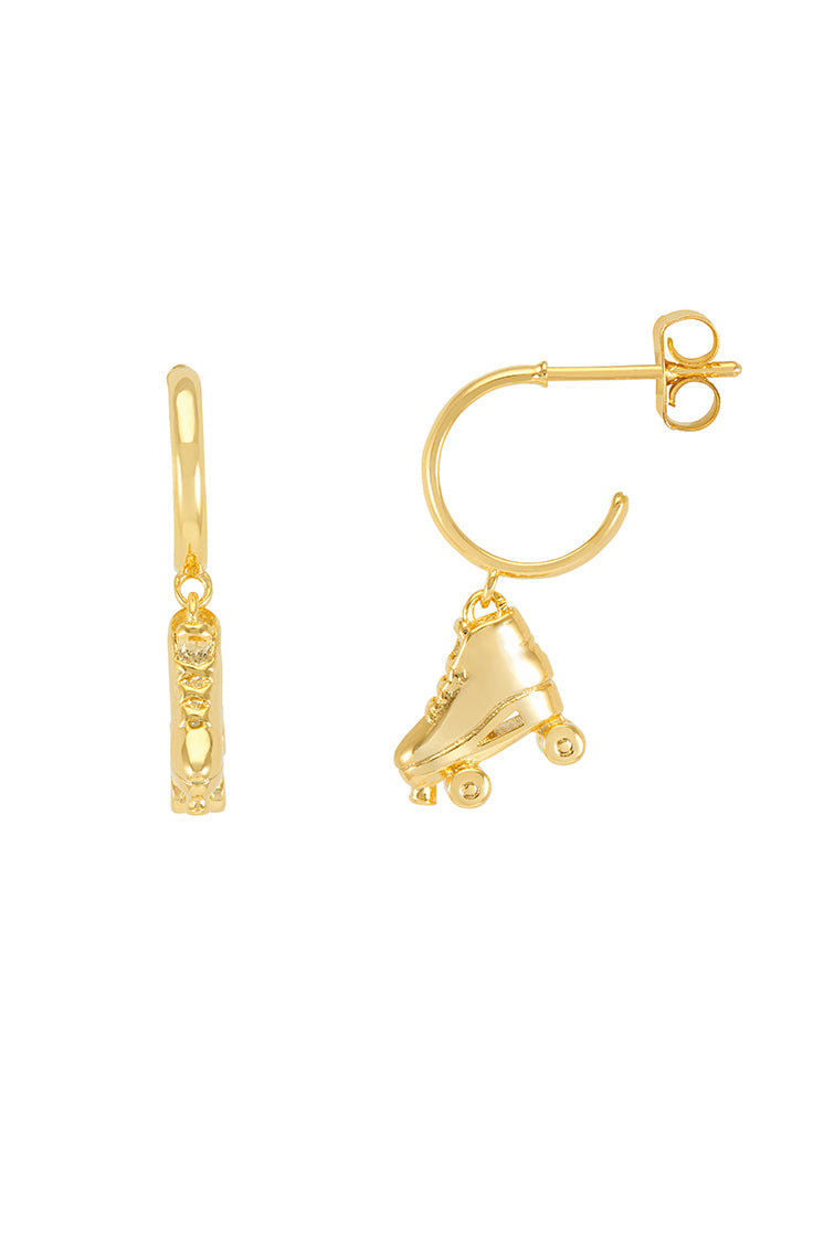 These hoop earrings feature playful roller skate charms. Each hoop measures 10mm, and the charm measures 9.7 x 10.7mm.