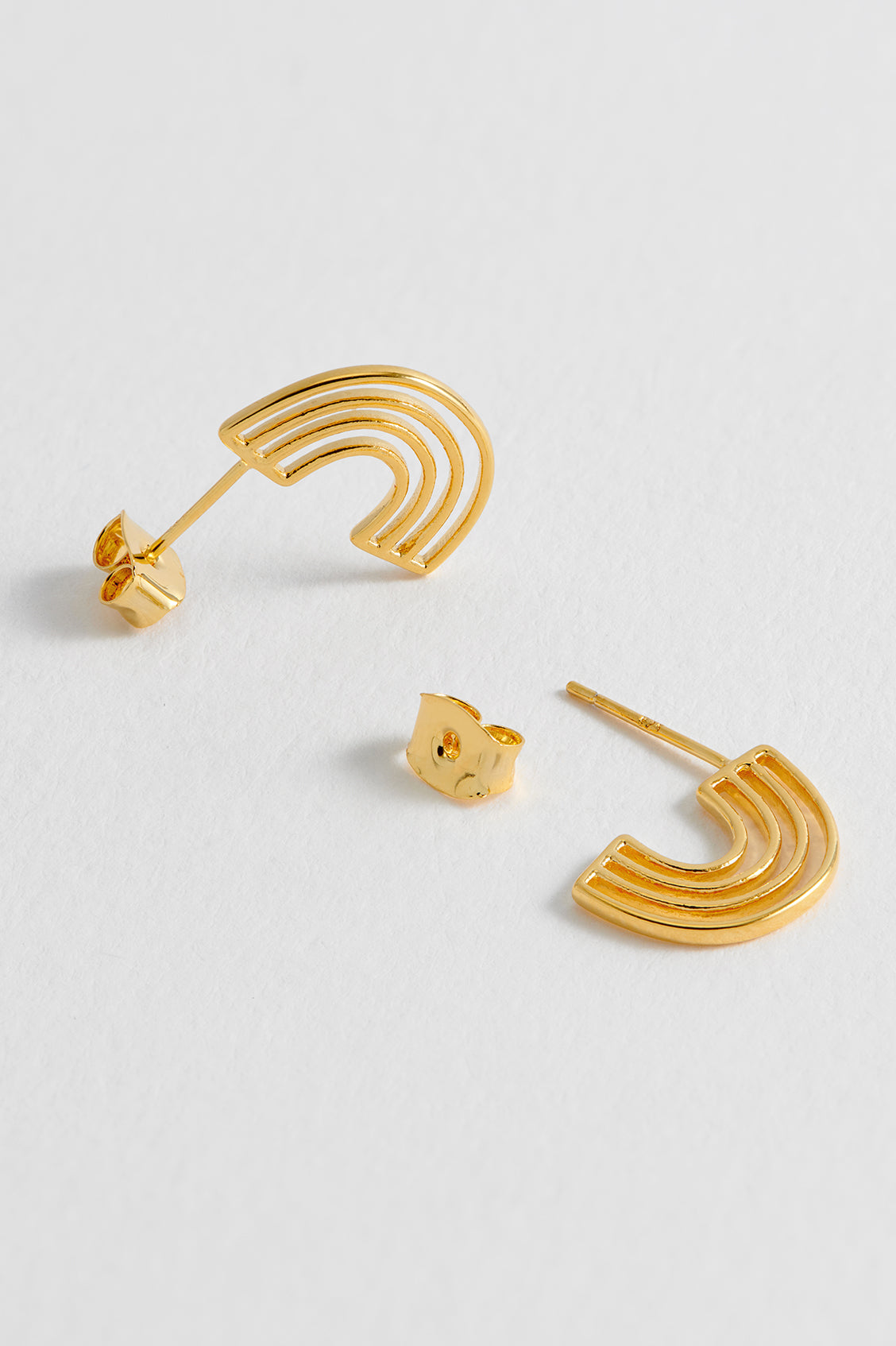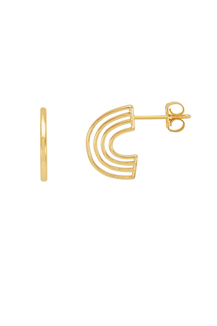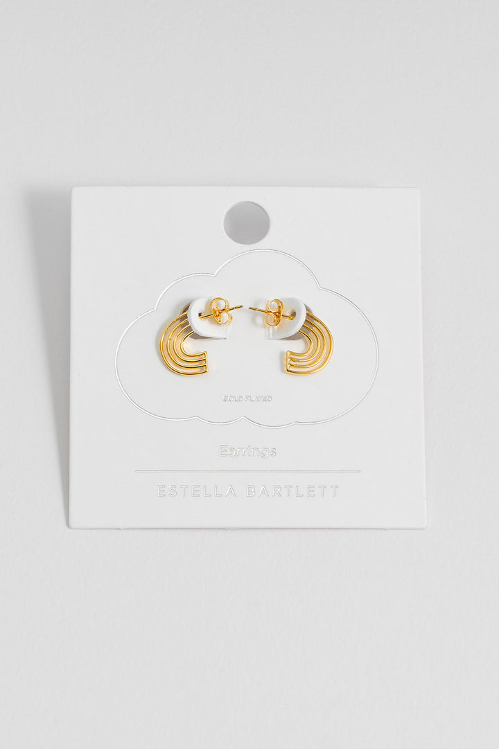 These earrings are crafted from gold-plated metal with a rainbow design. Each earring measures 14.5 x 10.5mm.