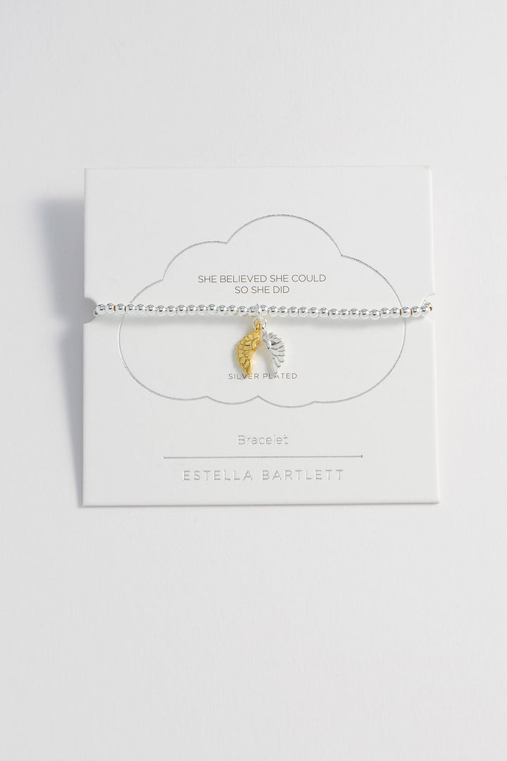 This Sienna Wings Bracelet is a versatile and elegant everyday piece. It features Estella Bartlett's iconic wing charm on a simple bead design. The stretch bracelet is packaged on a beautiful presentation card with an inspiring message, making it a perfect gift for a friend or loved one.