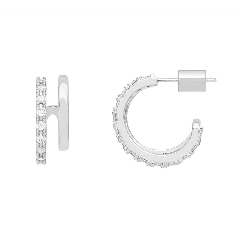 These Double Hoop Illusion Pave Earrings are designed to elevate any outfit with minimal effort. They create the illusion of a stacked look with a minimalist gold hoop and a larger hoop encrusted with sparkling cubic zirconia. This delicate pair adds a touch of sparkle and is perfect for adding a sophisticated, layered look to your style.