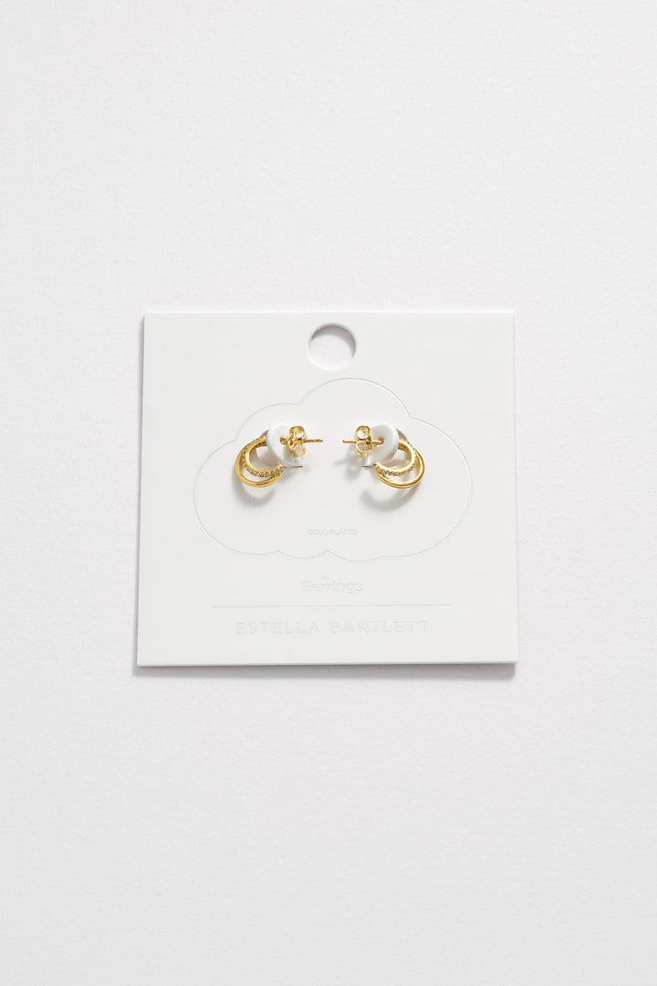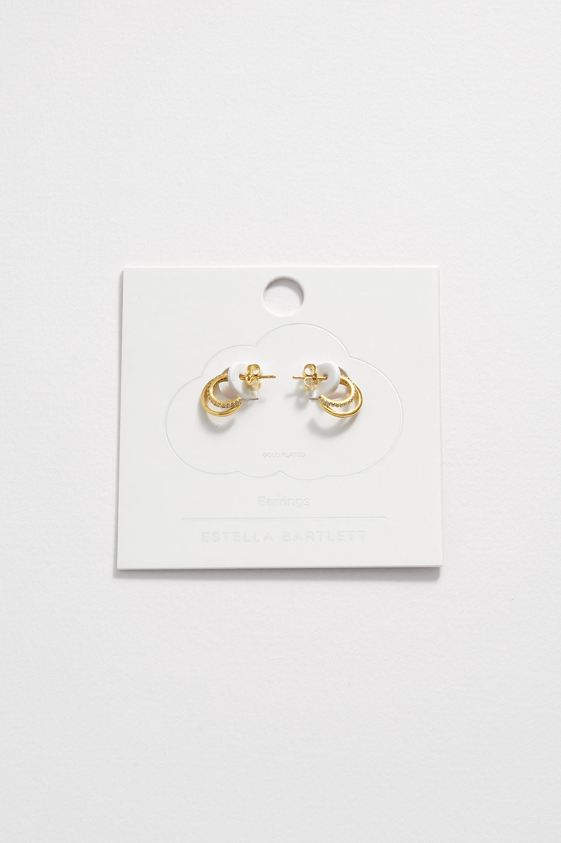 Crafted from gold-plated metal with a pave hoop. Each earring measures 1x1cm.