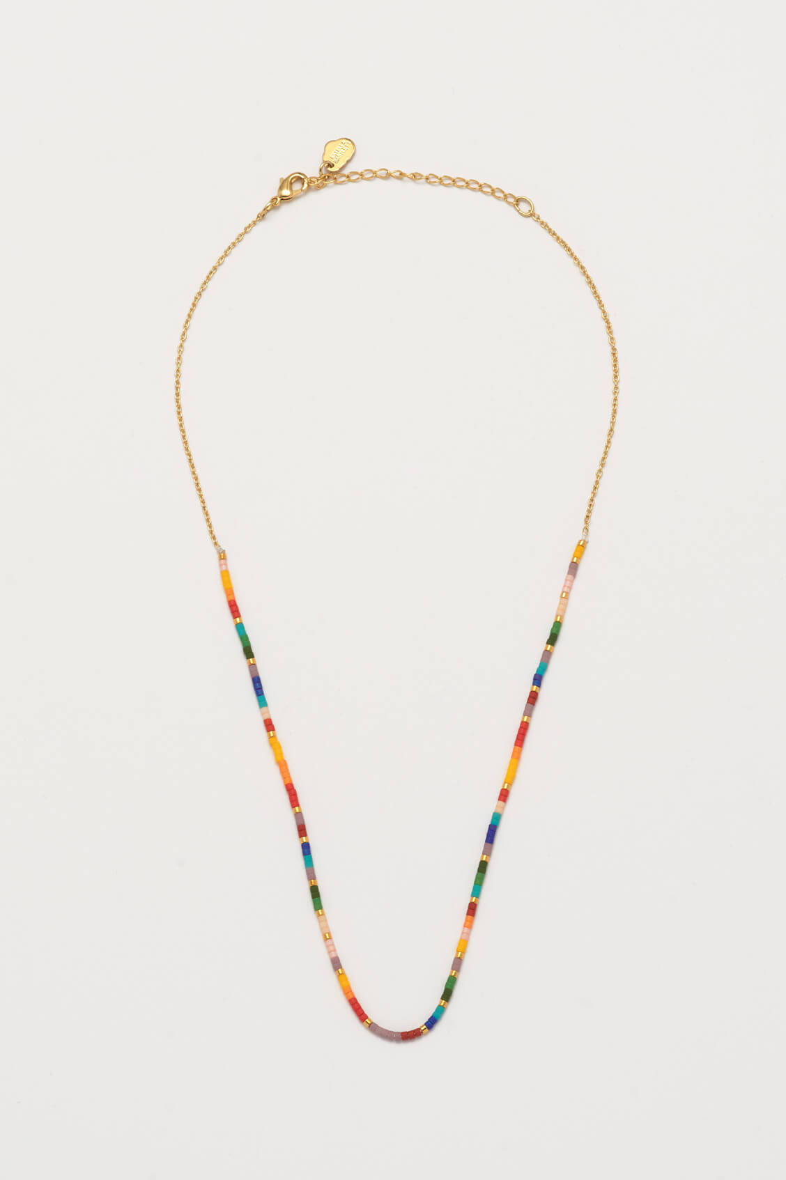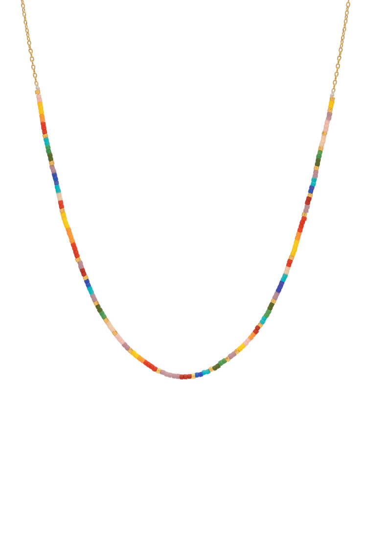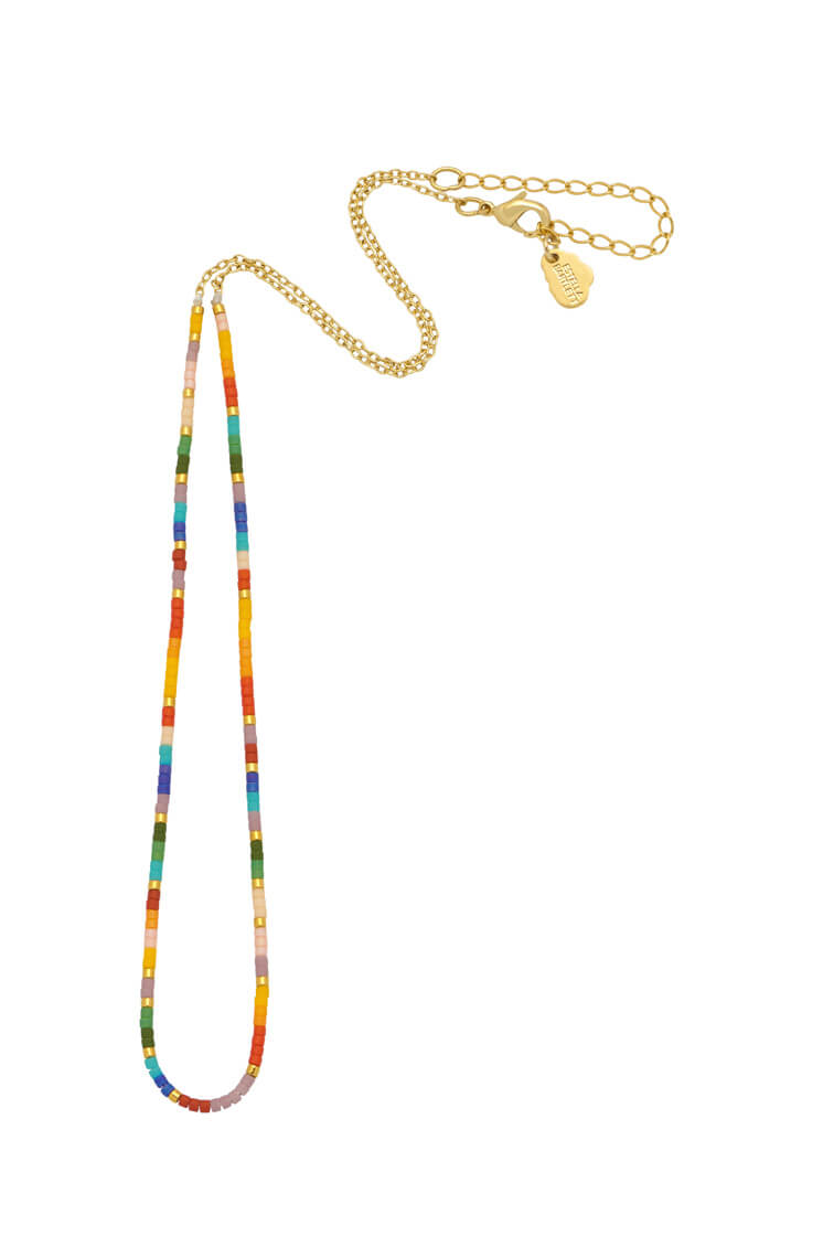 Crafted from a delicate gold-plated chain with colorful Miyuki beads. The chain measures 46cm in length.