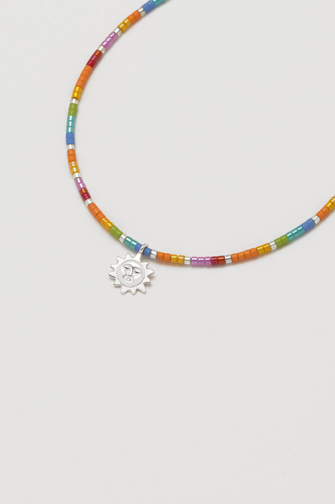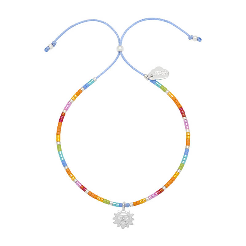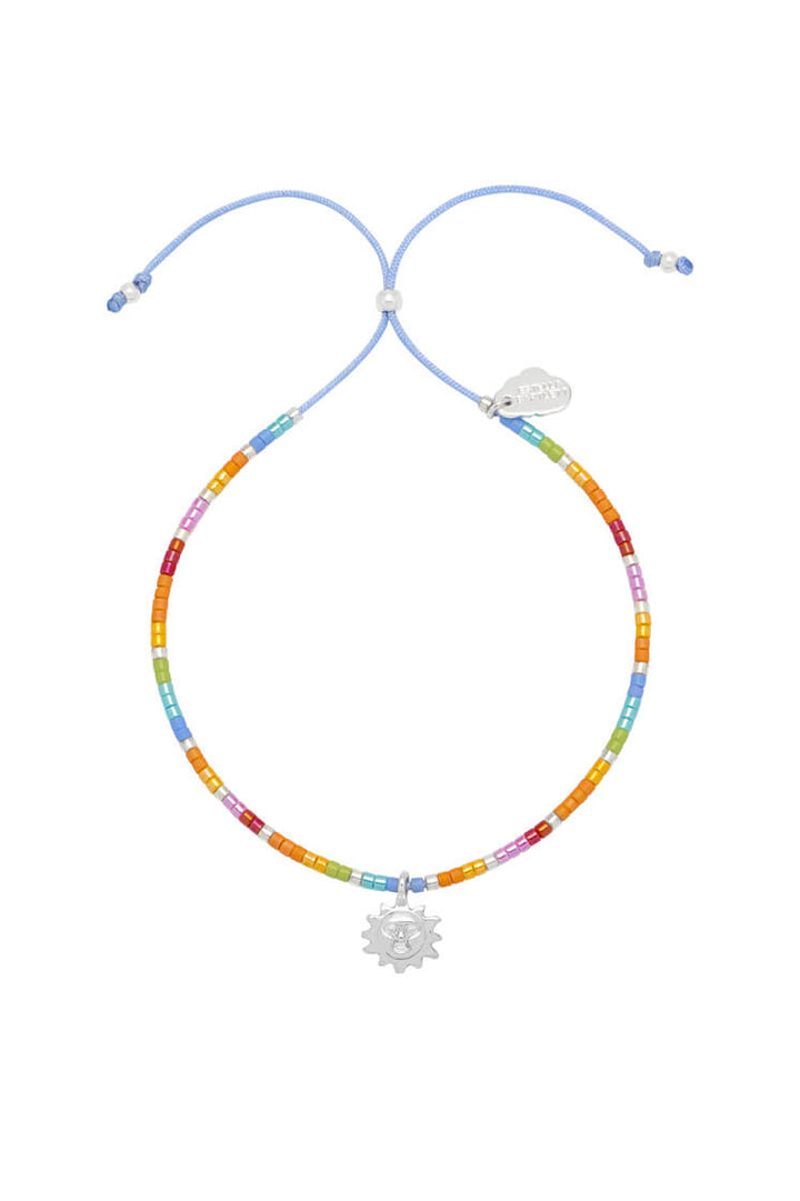 This Beaded Rainbow Sun Charm Louise Bracelet is a ray of sunshine for your wrist. The playful accessory features a rainbow of Miyuki beads that slide freely along the bracelet, completed by a beaming silver-plated sun pendant. This bracelet is a colorful and joyful piece that's sure to make you smile.