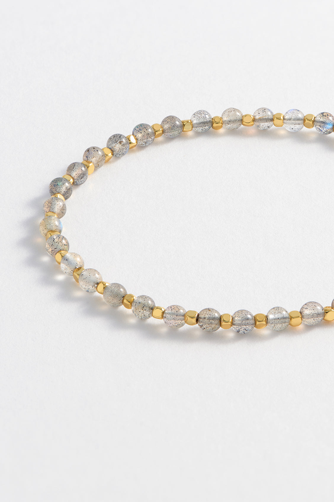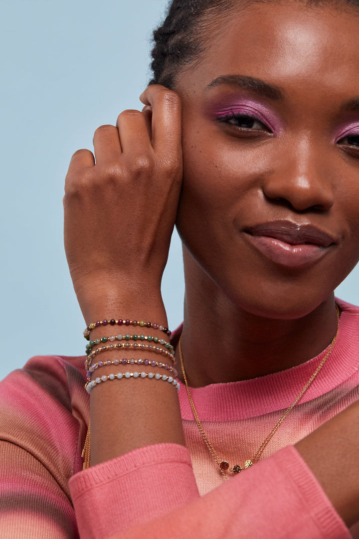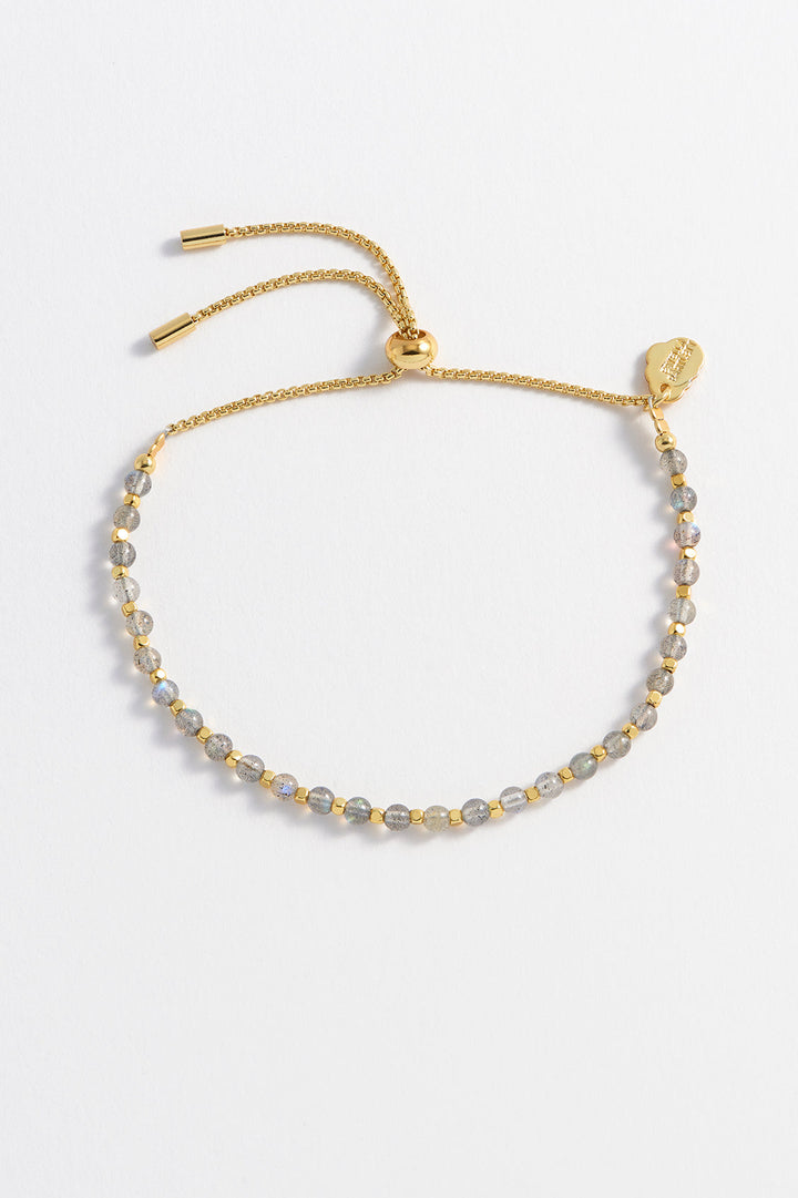 This Labradorite Gemstone Amelia Bracelet is a classic and meaningful accessory. It features labradorite and gold-plated beads on an adjustable slider fastening. Labradorite is thought to provide energy and aid in healing, making this bracelet not only a beautiful piece of jewelry but also a source of positive energy.