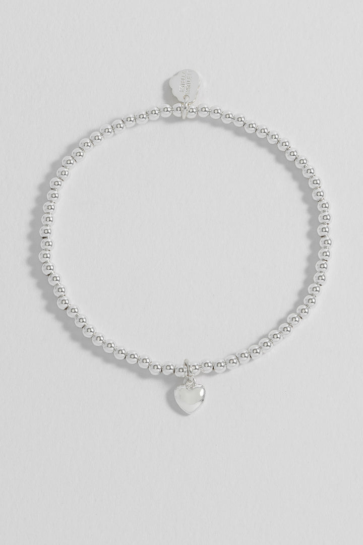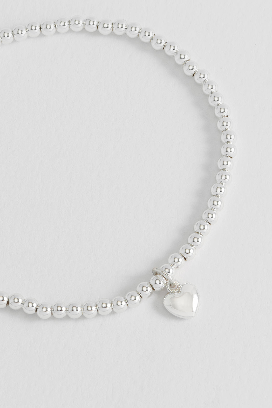 This bracelet is crafted from a silver-beaded chain with a silver-plated heart charm. It measures 16.5cm, and the charm measures 0.6x0.6cm.
