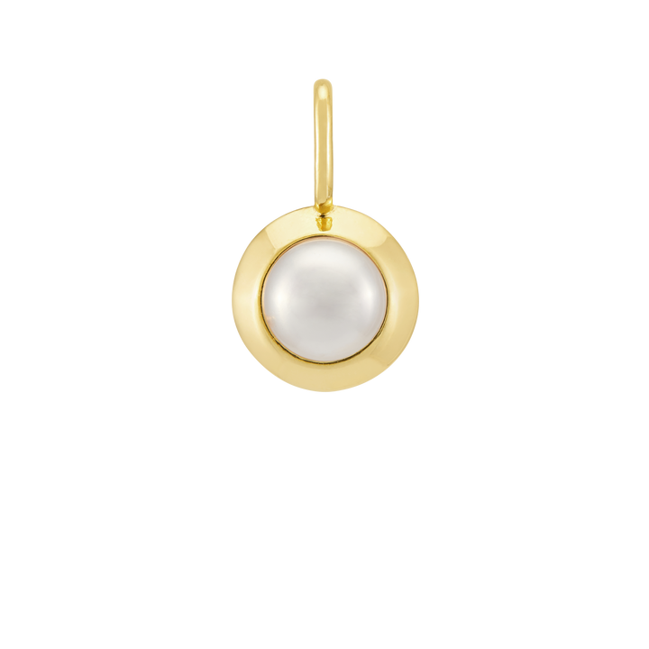 This June Birthstone Charm by Estella Bartlett is a delicate and meaningful addition to a personalized necklace. This charm features a lustrous pearl, the birthstone for June, set in gold plating. It has a classic, elegant aesthetic and symbolizes purity, wisdom, and integrity. This charm is a beautiful and unique way to celebrate a special birthday or a personal milestone.