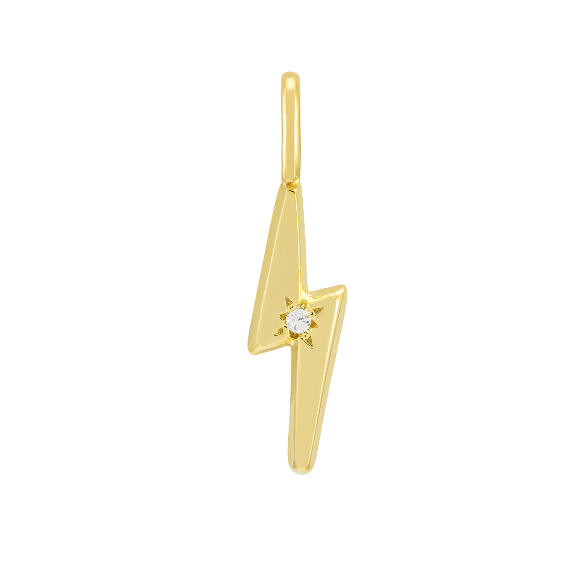 This Lightning Bolt CZ Charm by Estella Bartlett is a striking and edgy addition to a personalized necklace. The charm features a sharp lightning bolt shape adorned with a sparkling cubic zirconia stone, creating a look that is both bold and glamorous. This charm symbolizes power and energy, making it a perfect accent piece for those who want to add an electrifying touch to their collection.