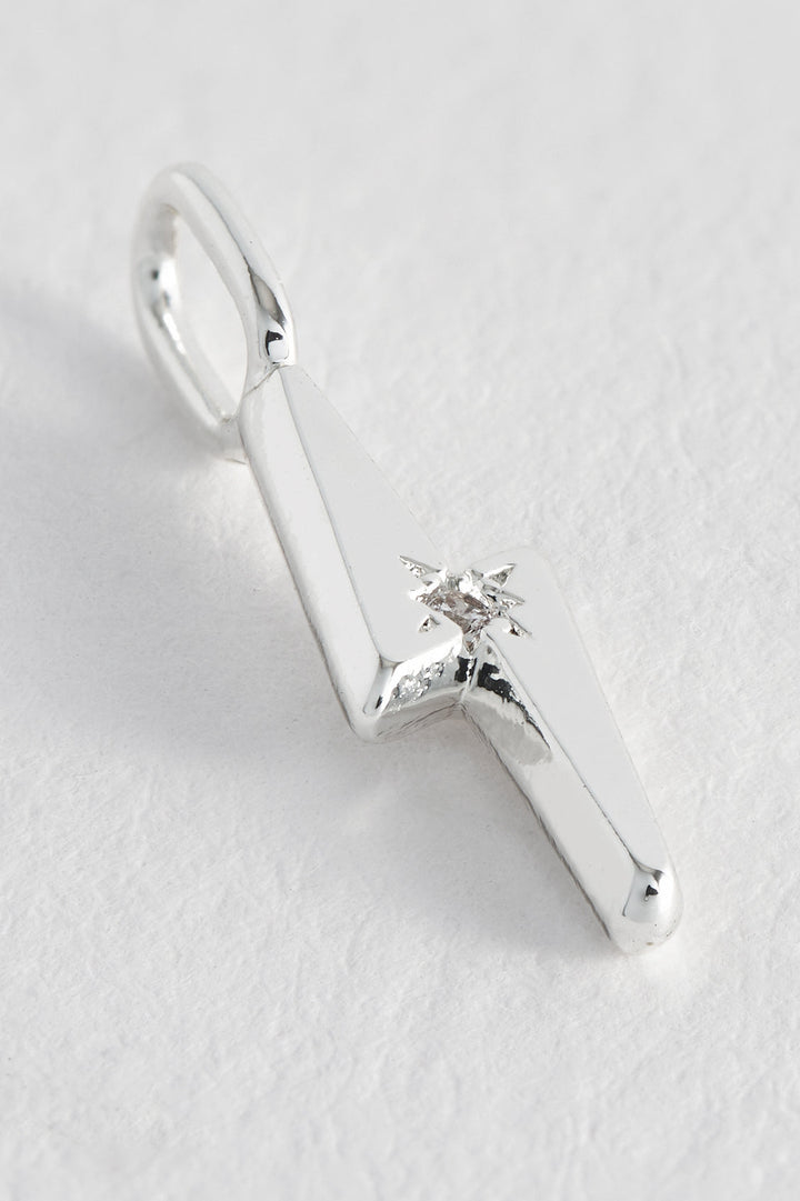 This charm is crafted from silver-plated metal and features a cubic zirconia stone. It measures approximately 2x0.5cm.
