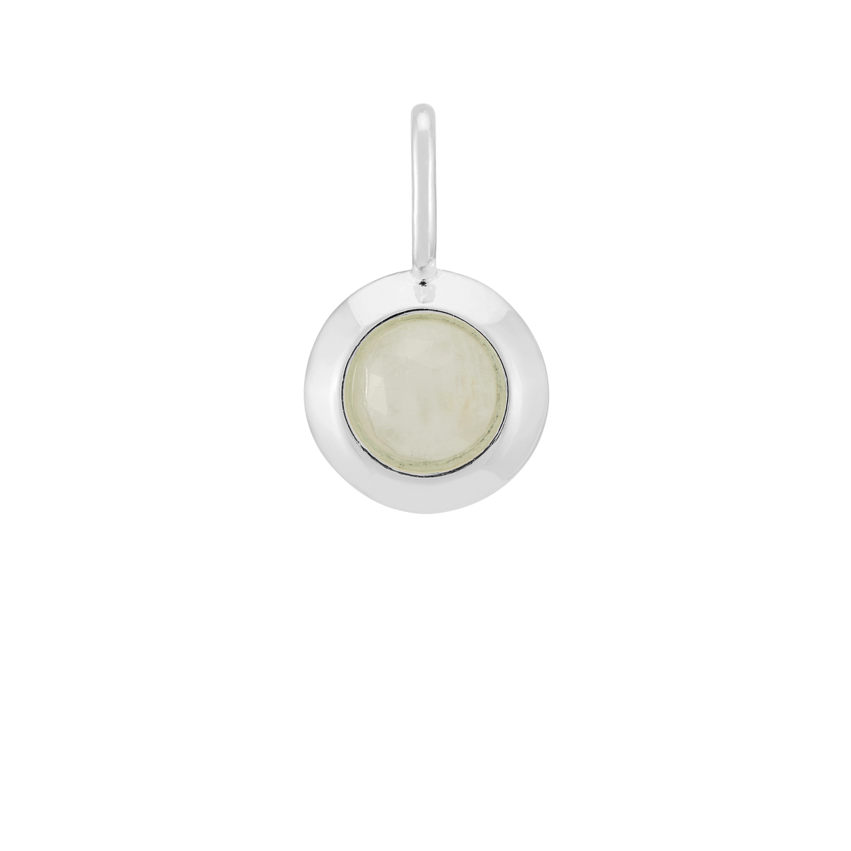 This charm is crafted from silver-plated metal and features a natural moonstone. It measures approximately 1.2x0.8cm.