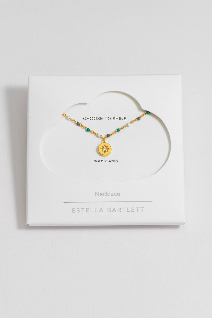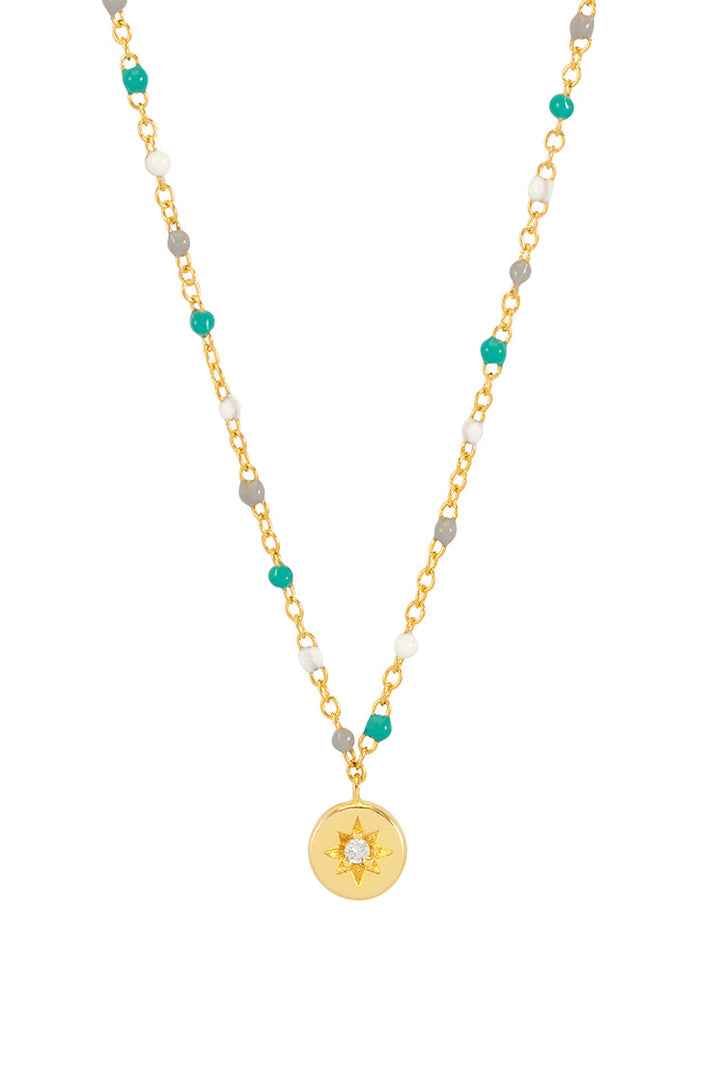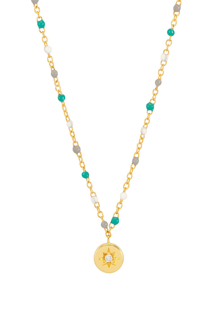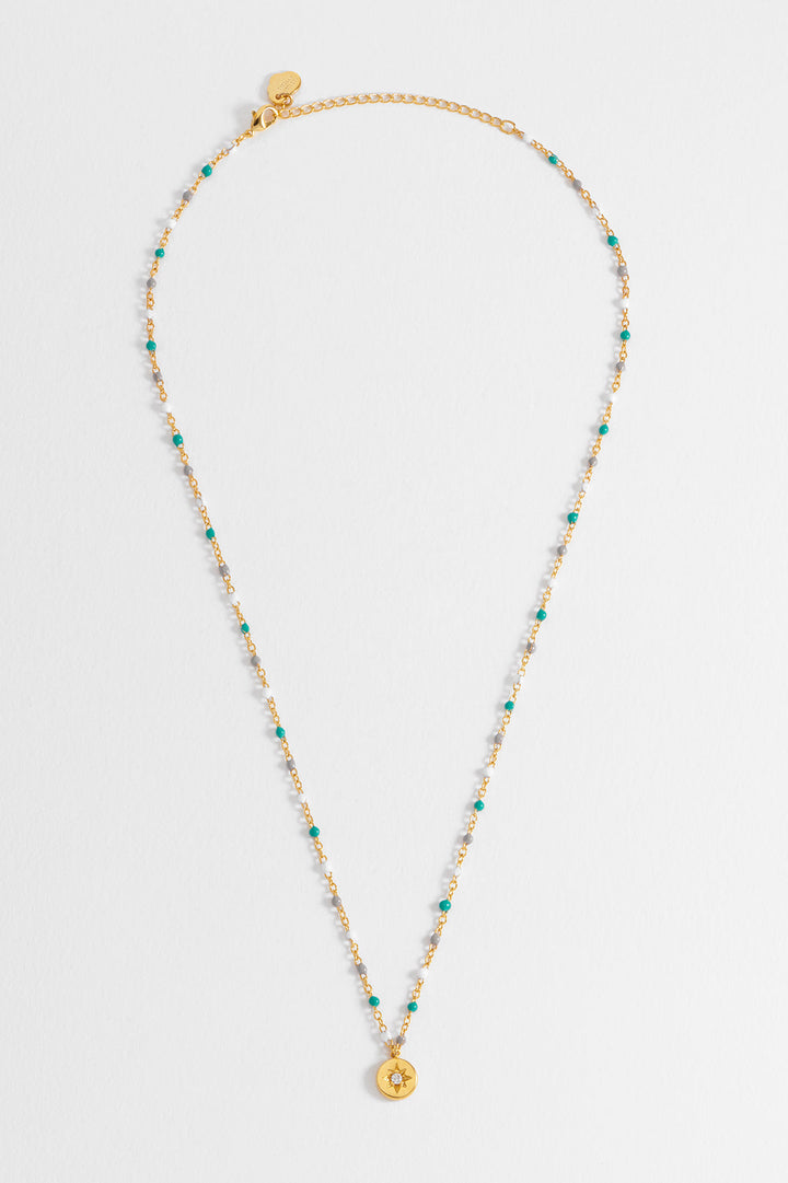 This necklace is crafted from metal and features enamel beads and a cubic zirconia star pendant on a 44-48cm chain. The charms measure 1x1cm.