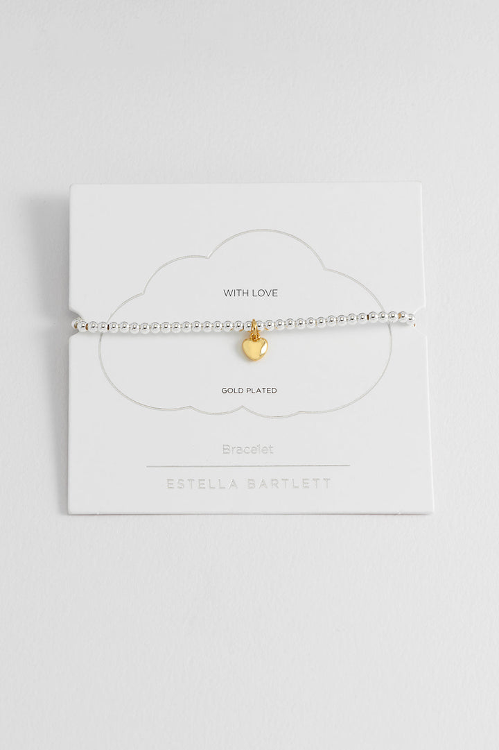 This Sienna Beaded Puffy Heart Charm Bracelet by Estella Bartlett is a sweet and playful upgrade to a classic style. The bracelet features a string of silver beads with a charming, gold-plated puffy heart charm that adds a touch of love and fun to your collection. This piece has a lighthearted and affectionate vibe, making it perfect for adding a bit of personality and joy to your stack.