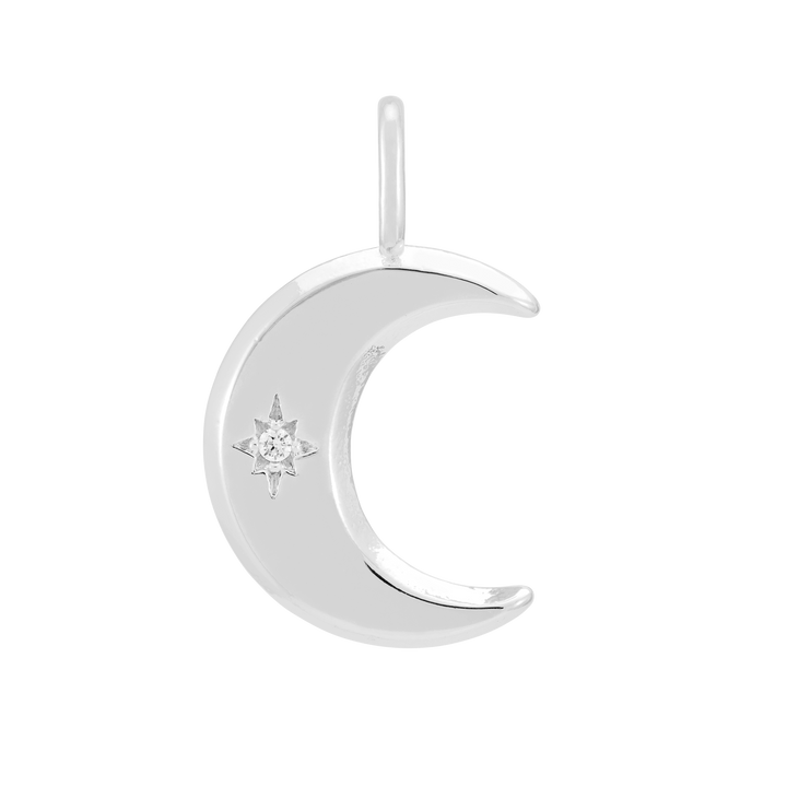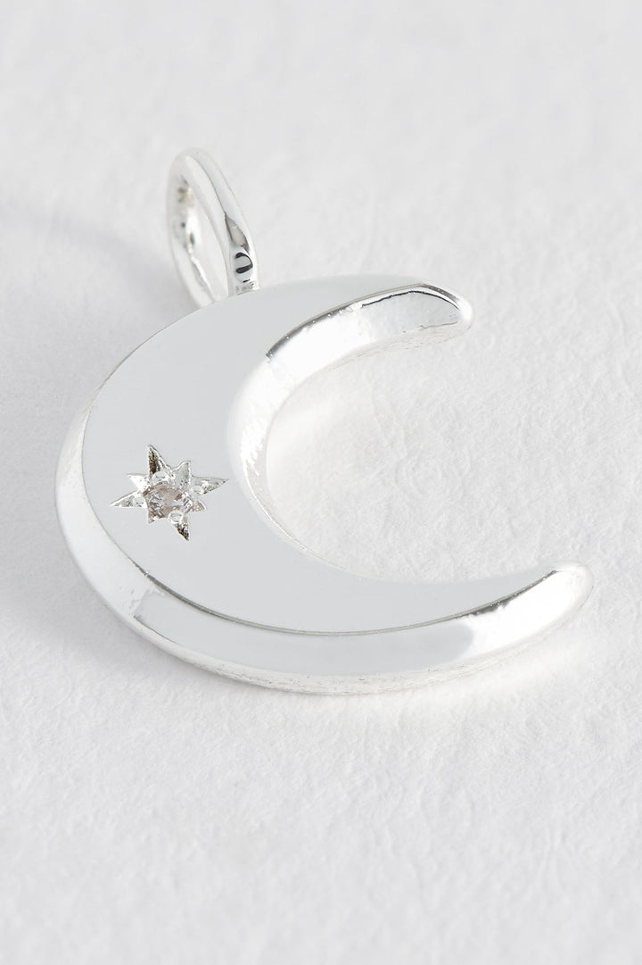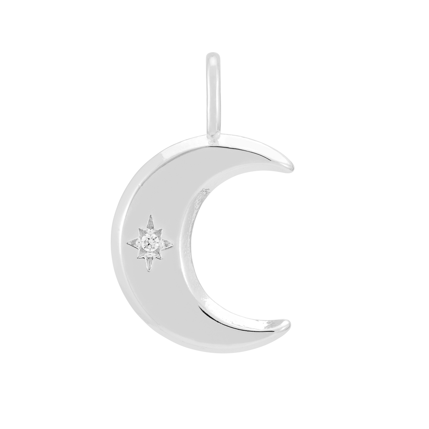 This Moon CZ Charm by Estella Bartlett is a celestial and elegant addition to a personalized necklace. The delicate, silver-plated crescent-shaped charm has a clean knife-edge design with a single cubic zirconia stone at its center. This charm has a dreamy, cosmic vibe and is perfect for those who are drawn to the beauty of the night sky. It pairs beautifully with a star charm for a personalized, space-inspired look.