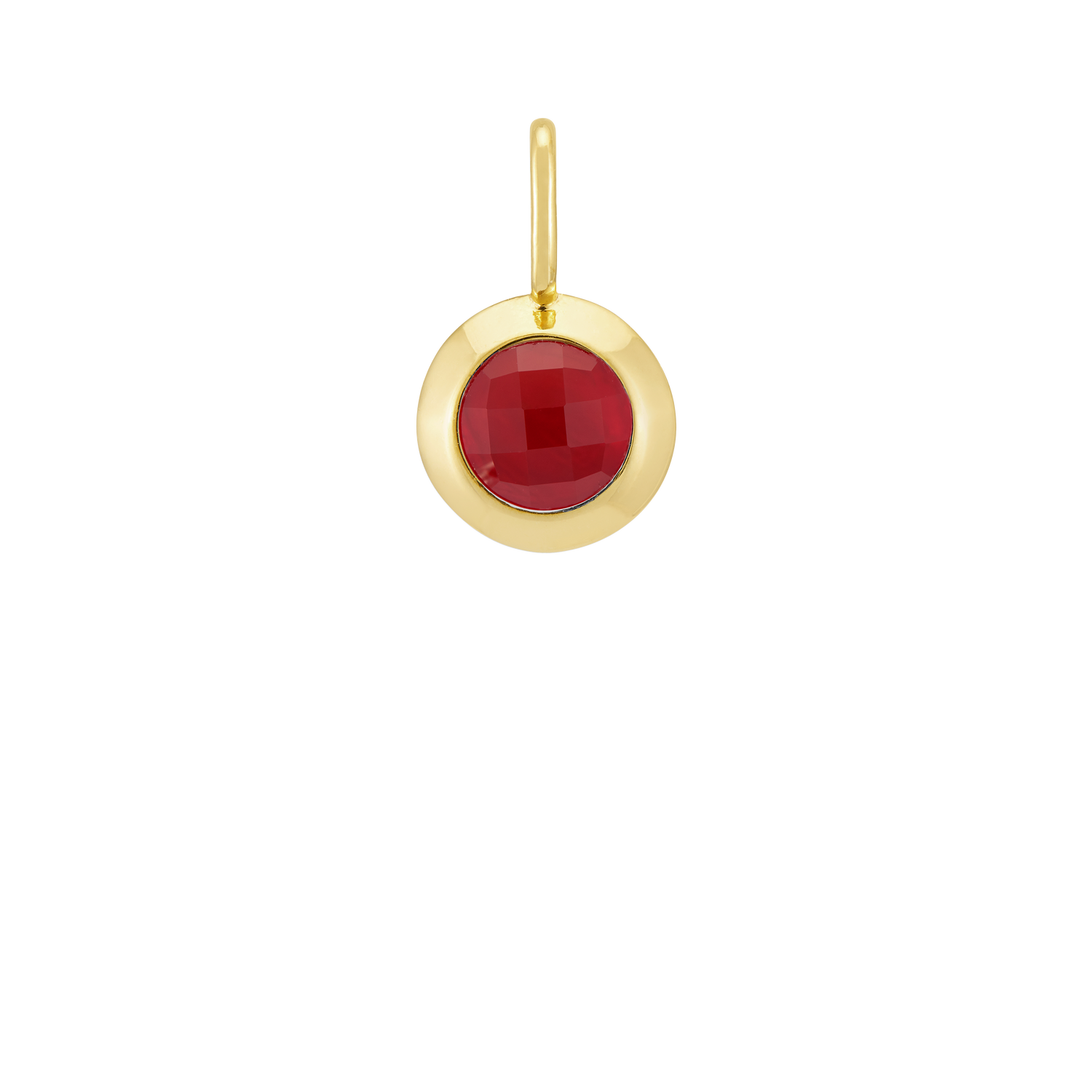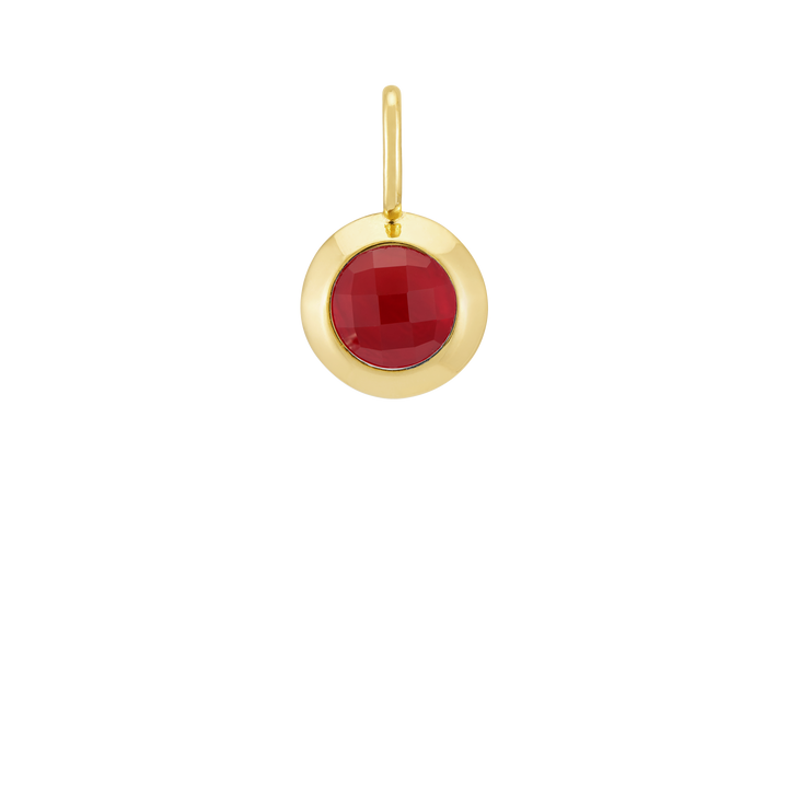 This January Birthstone Charm by Estella Bartlett is a personal and elegant addition to a customized necklace. This charm features a brilliant red onyx stone, the birthstone for January, set in a polished gold-plated setting. Red onyx is a stone of strength and protection, making this a beautiful and thoughtful gift. You can pair it with a Wildflower Initial Charm to create a piece that is truly unique to you.