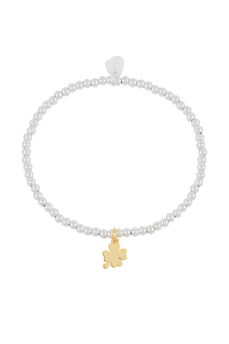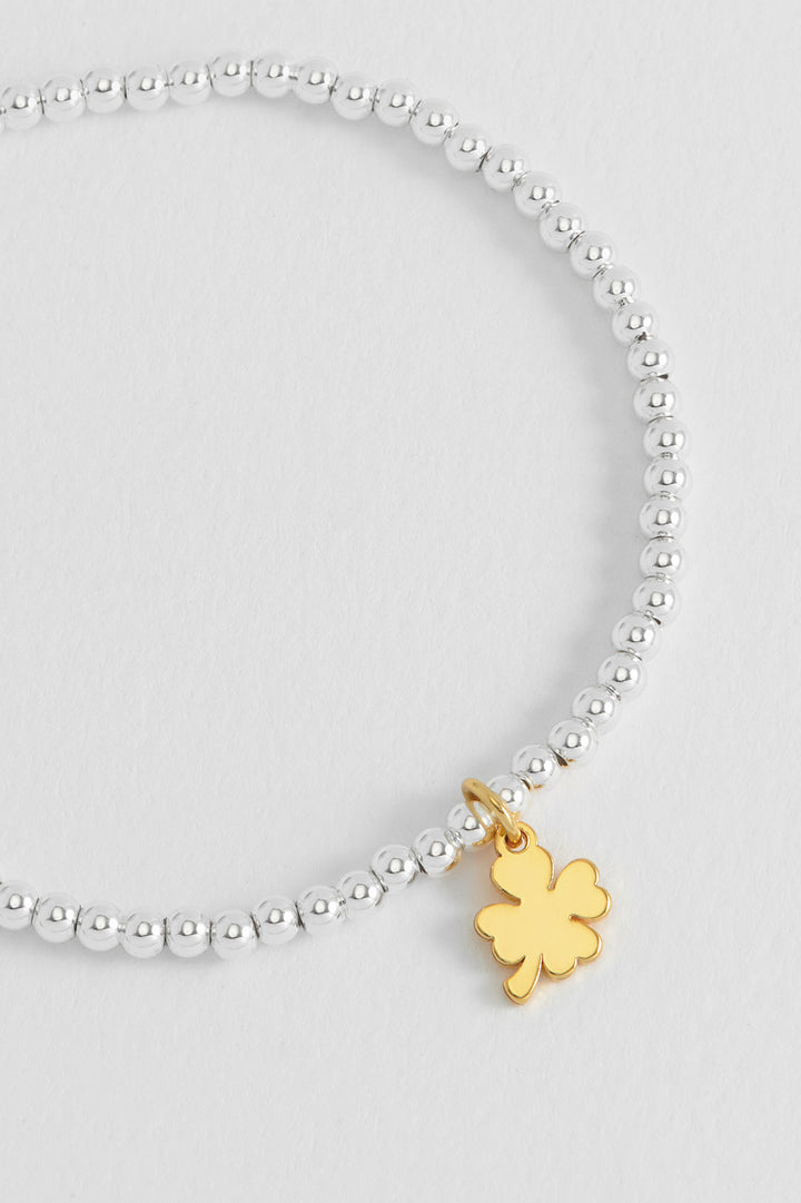 This Sienna Beaded Lucky Clover Charm Bracelet by Estella Bartlett is a charming piece designed to bring good fortune. The gold-plated beaded bracelet features a lucky four-leaf clover charm, a classic symbol of luck. This piece has a lighthearted and hopeful aesthetic, making it a perfect gift to wish someone well or to carry a little luck with you wherever you go.