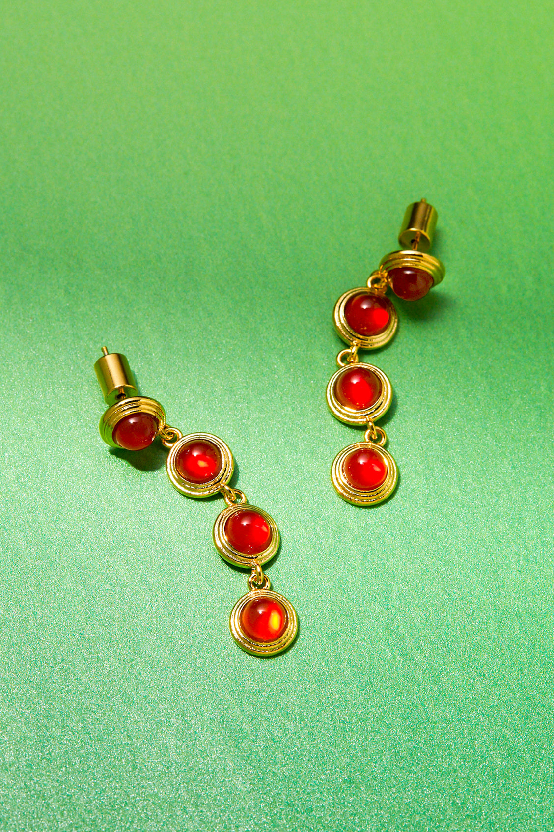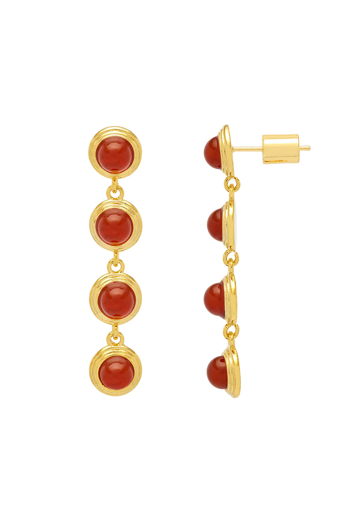 These earrings are crafted from gold-plated metal and feature a natural red agate gemstone. Each earring measures 4x0.8cm overall and the gemstone measures 0.5cm.