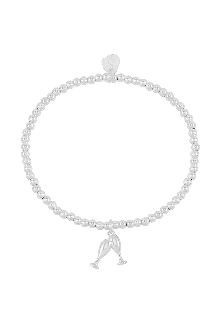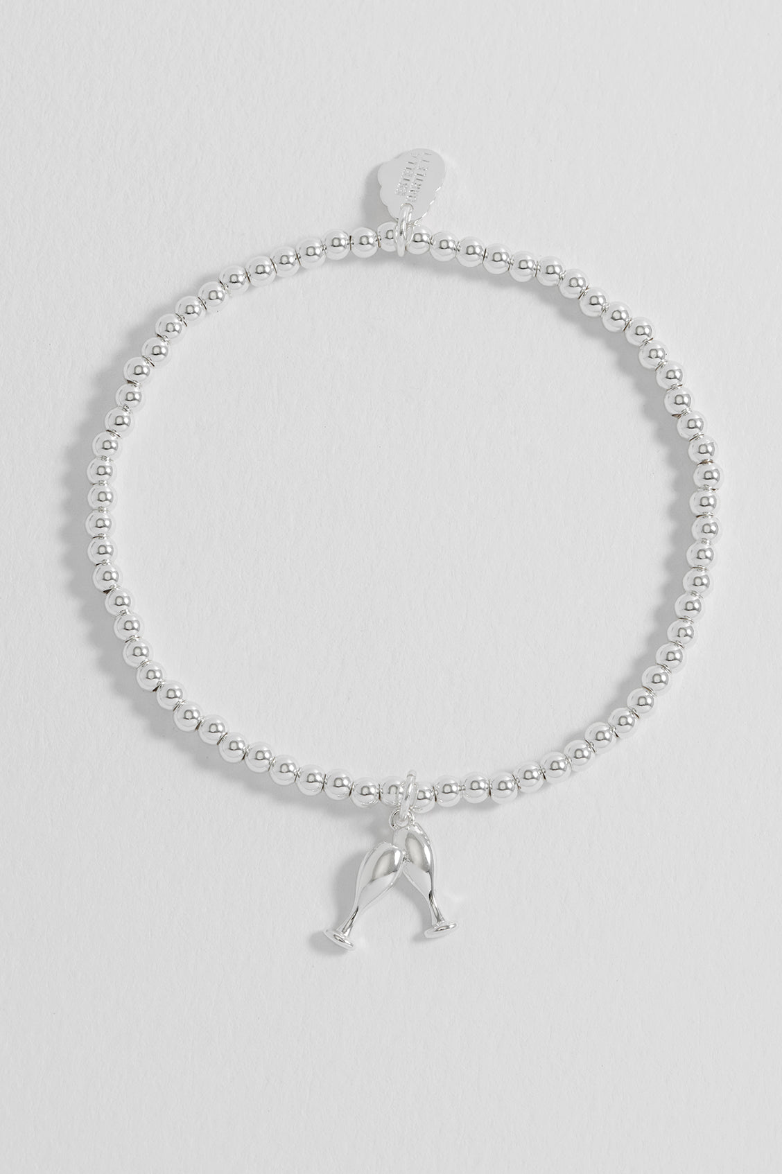 This bracelet is crafted from silver-plated metal with beaded detailing and a champagne glass charm. It measures 16.5cm and the charm is 1.3x1.3cm.