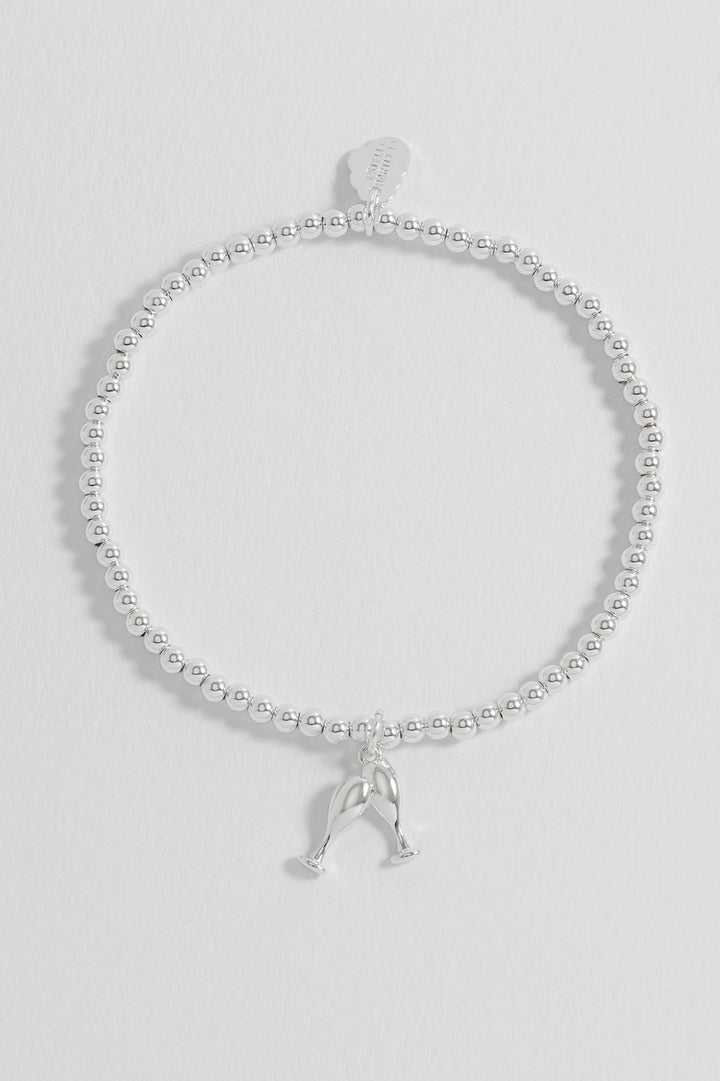 This Sienna Beaded Champagne Charm Bracelet by Estella Bartlett is a celebratory piece for any special occasion. The silver-plated beaded bracelet features a fun champagne glass charm, making it a perfect way to add some sparkle and joy to your outfit. It’s a great piece to wear when saying cheers to life's celebrations.