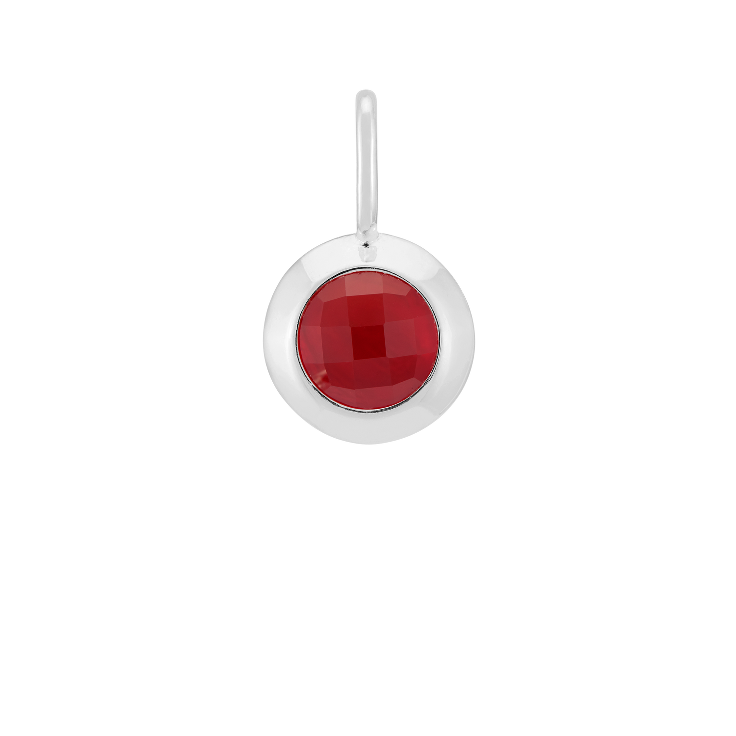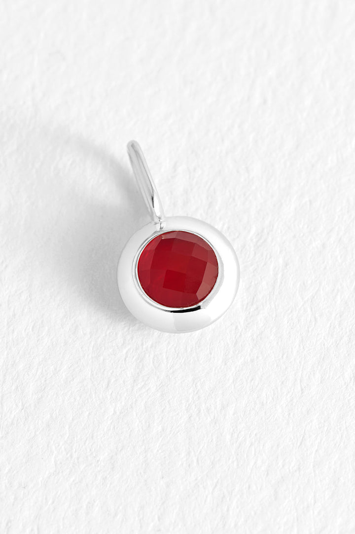 This January Birthstone Charm by Estella Bartlett is a personal and elegant addition to a customized necklace. This charm features a brilliant red onyx stone, the birthstone for January, set in a polished silver-plated setting. Red onyx is a stone of strength and protection, making this a beautiful and thoughtful gift. You can pair it with a Wildflower Initial Charm to create a piece that is truly unique to you.