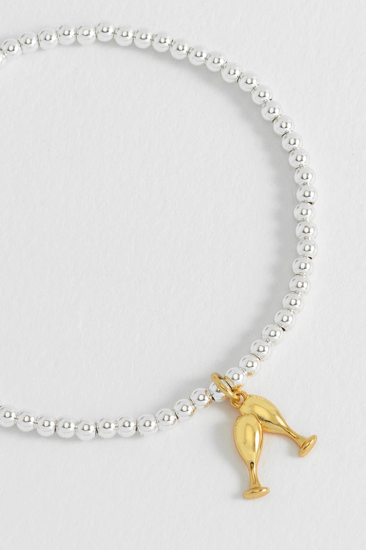 This bracelet is crafted from gold-plated metal with beaded detailing and a champagne glass charm. It measures 16.5cm and the charm is 1.2x1.2cm.
