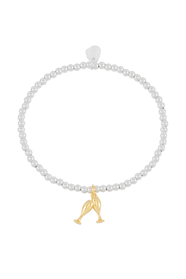 This Sienna Beaded Champagne Charm Bracelet by Estella Bartlett is a festive and fun piece for celebrations. The gold-plated beaded bracelet features a charming champagne glass charm, making it a perfect way to add some sparkle and joy to your outfit. It’s a great piece to wear for any celebratory occasion.