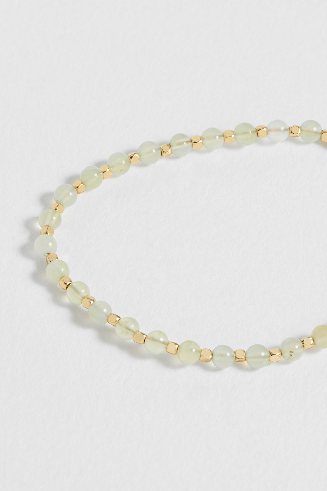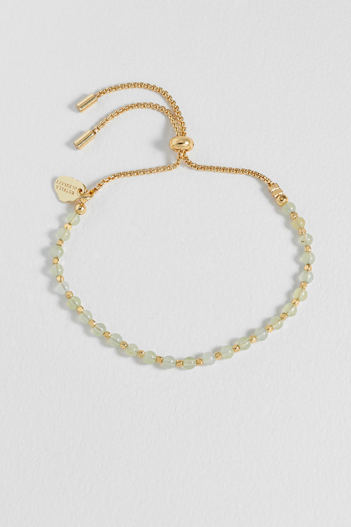 This bracelet is crafted with a prehnite gemstone and has a chain that measures 20.8cm with an adjustable slider. The gemstone bead measures 0.2 x 0.2cm.