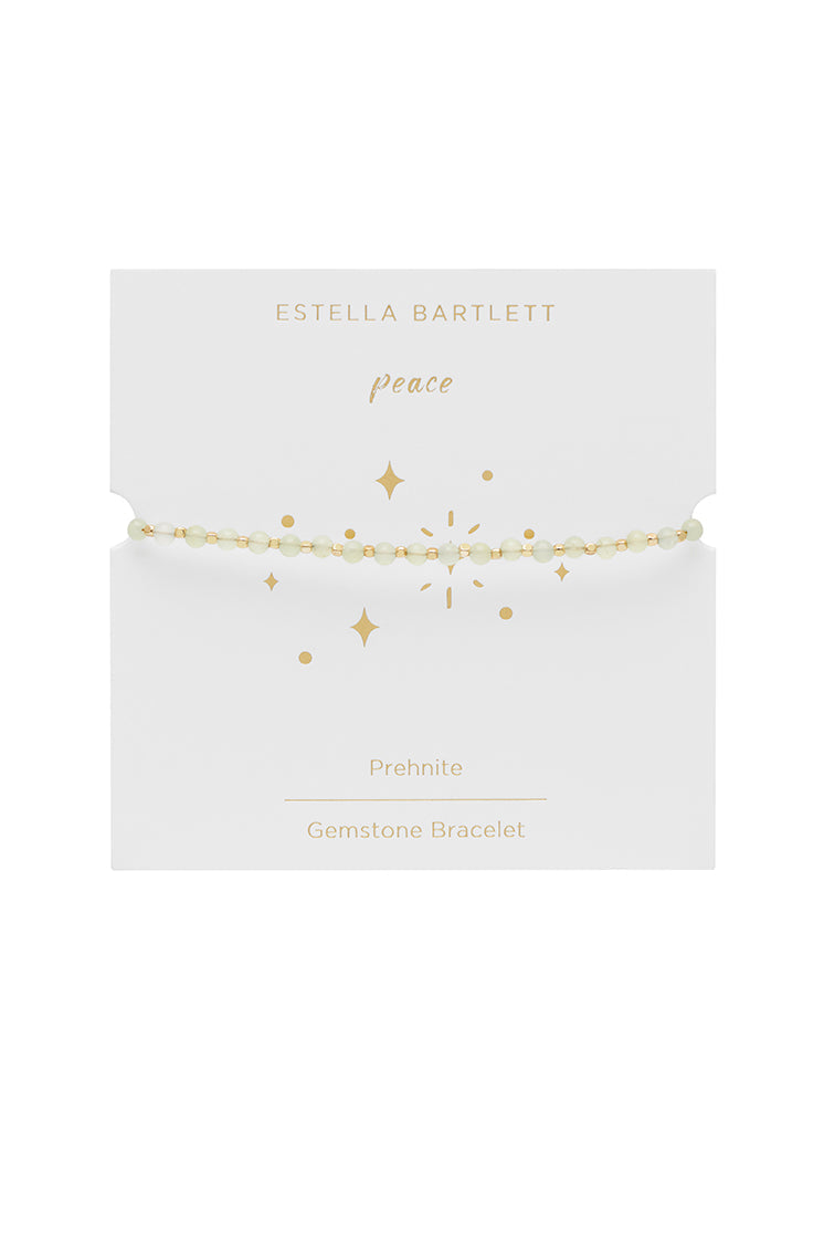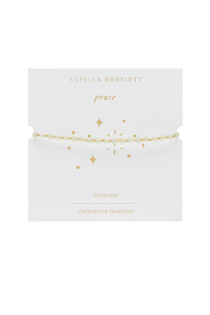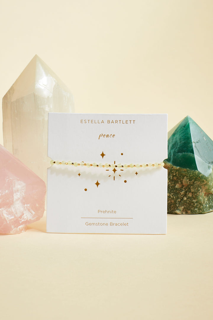 This Wellness Prehnite Gemstone Amelia Bracelet by Estella Bartlett is a beautiful piece with a tranquil, dreamy vibe. The soothing green tones of the natural prehnite gemstone add a meaningful pop of color and are said to promote peace and tranquility, making it a perfect gift for a loved one or a thoughtful treat for yourself. Its adjustable design ensures a comfortable and perfect fit for daily wear.