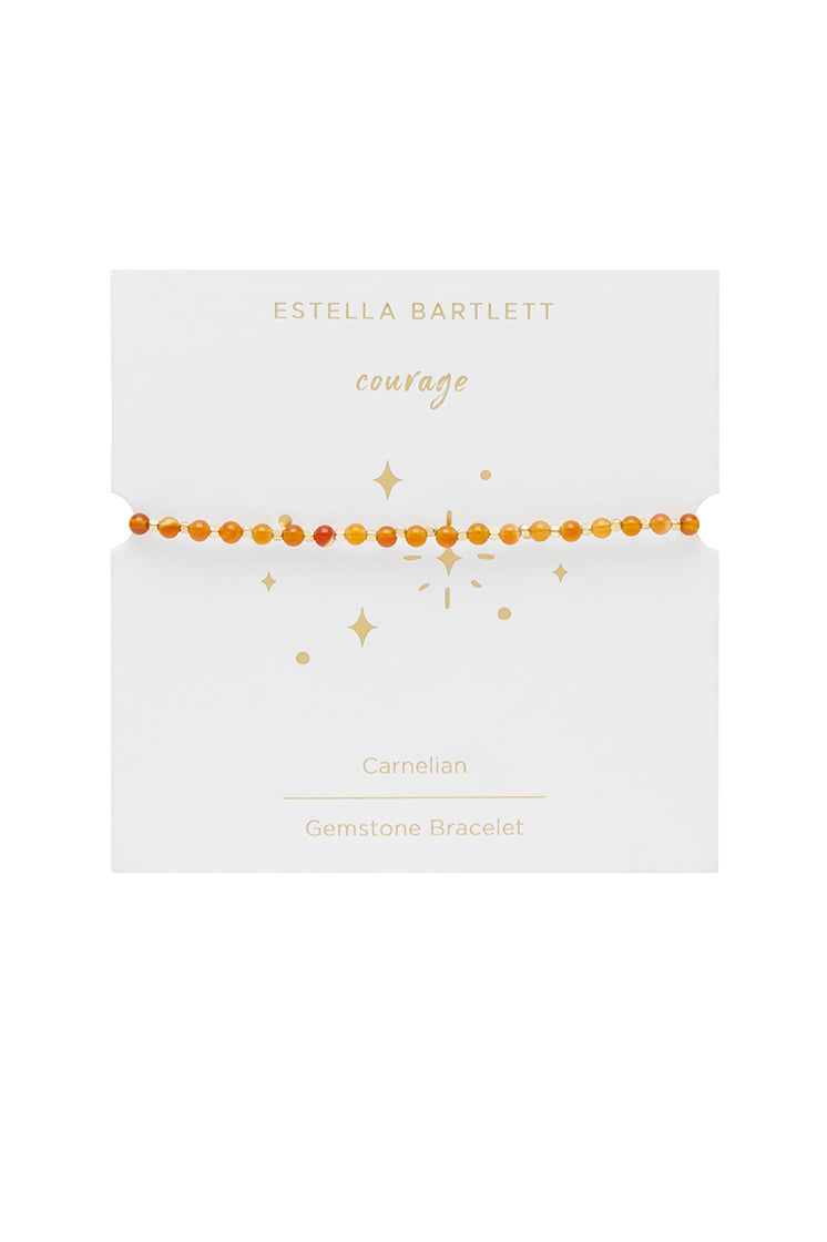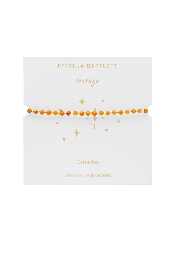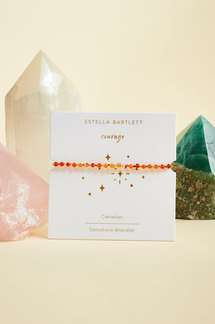 This Wellness Carnelian Gemstone Amelia Bracelet by Estella Bartlett is a stunning piece that radiates warmth and confidence. The fiery hues of the natural carnelian gemstone are believed to inspire courage and empowerment. This adjustable bracelet is a powerful accessory that adds a vibrant touch of color and symbolic strength to any look, making it a perfect statement piece for daily wear.