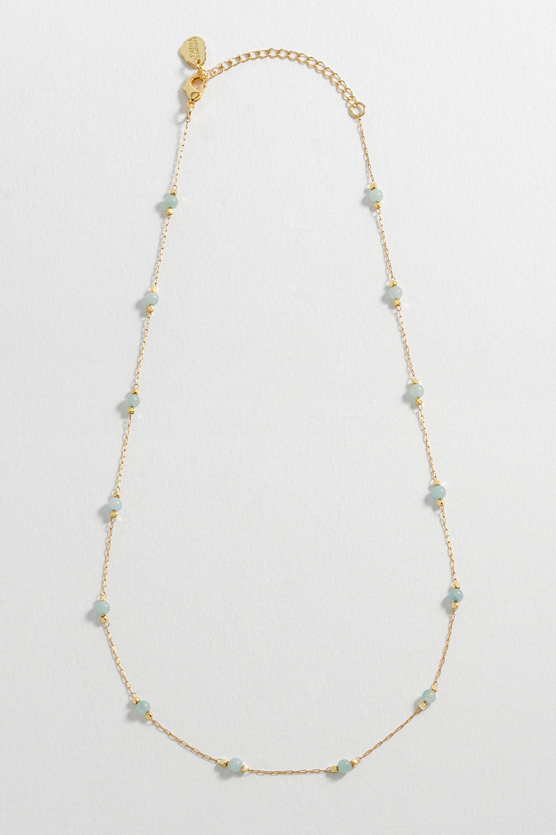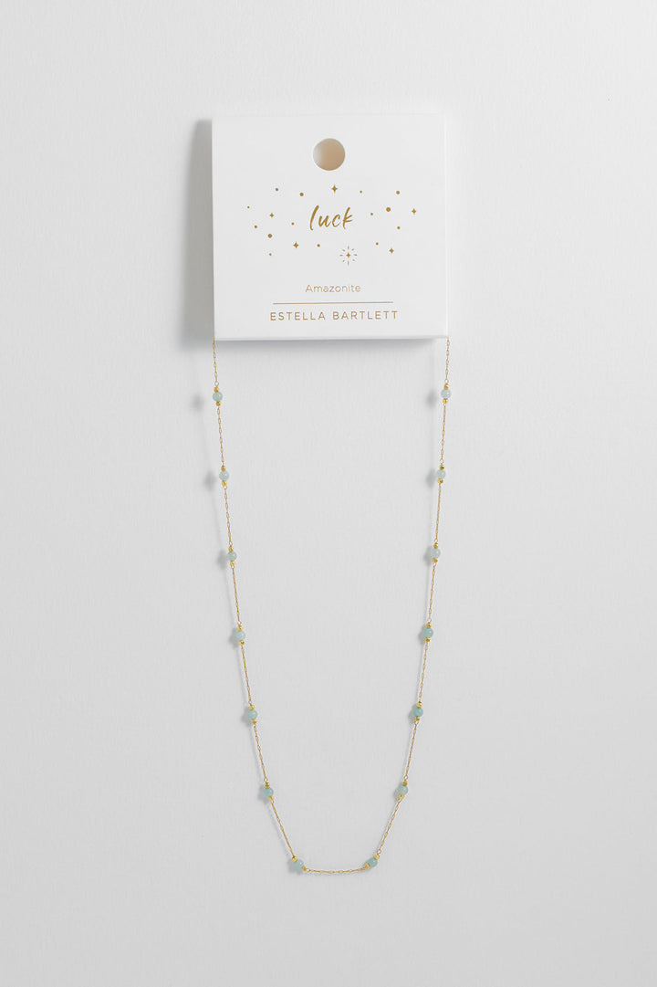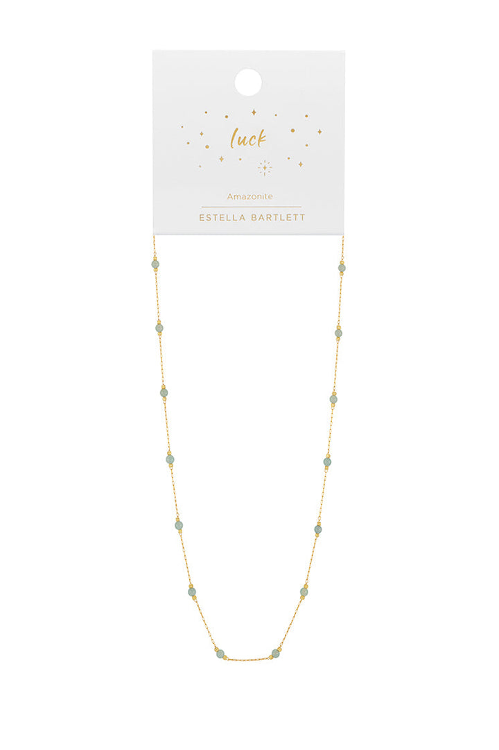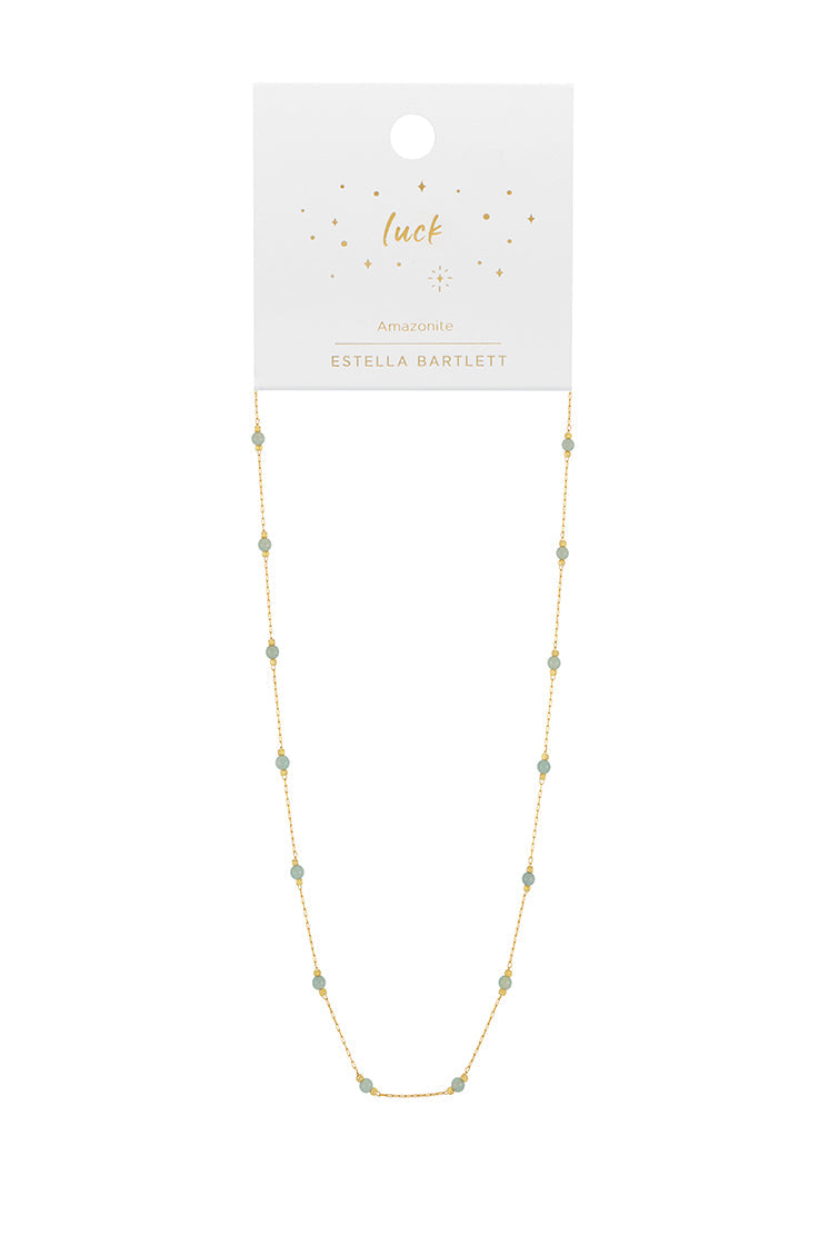 This Wellness Amazonite Gemstone Bead Necklace by Estella Bartlett is a charming and meaningful piece inspired by the Amelia design. The gentle, healing properties of the natural amazonite gemstone are believed to bring good luck and protection to the wearer. Its vibrant color adds a perfect pop of style, making this necklace a wonderful addition for those who appreciate both beauty and symbolic significance.