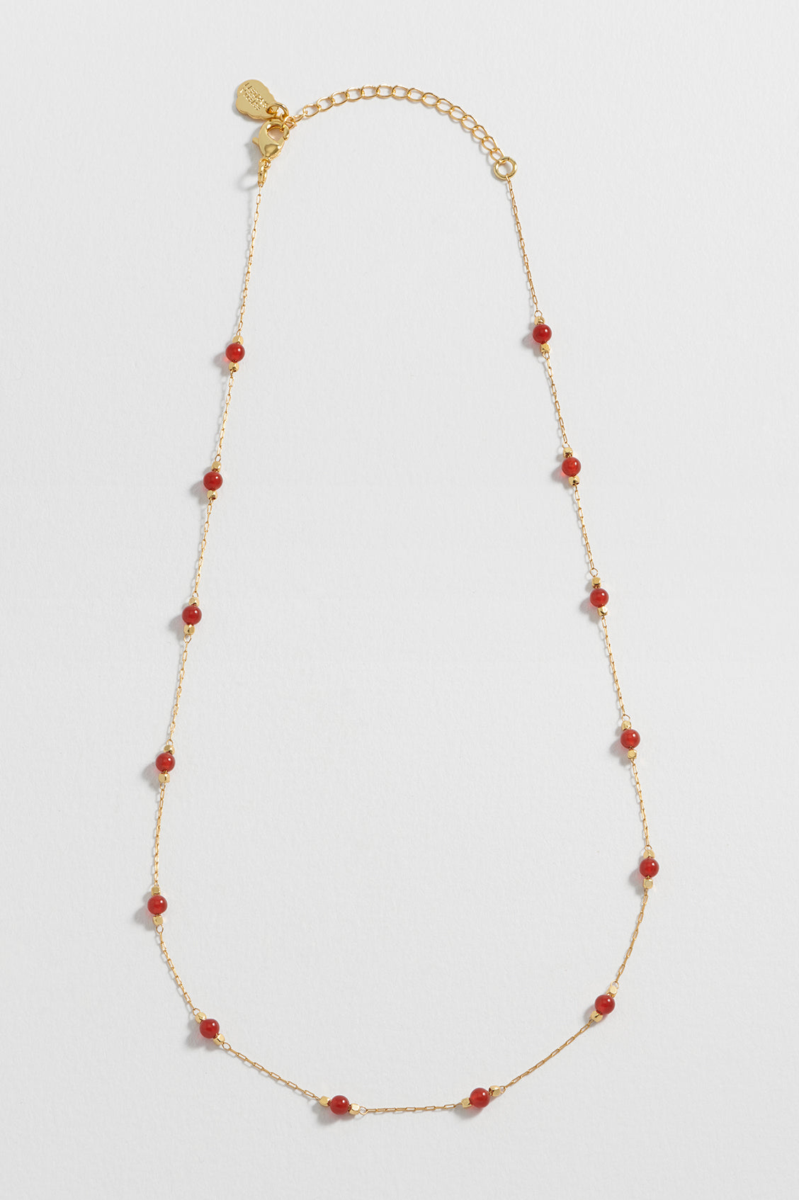 This necklace features red agate gemstones. The chain measures 44-48cm, and the gemstone beads measure 0.2 x 0.2cm.