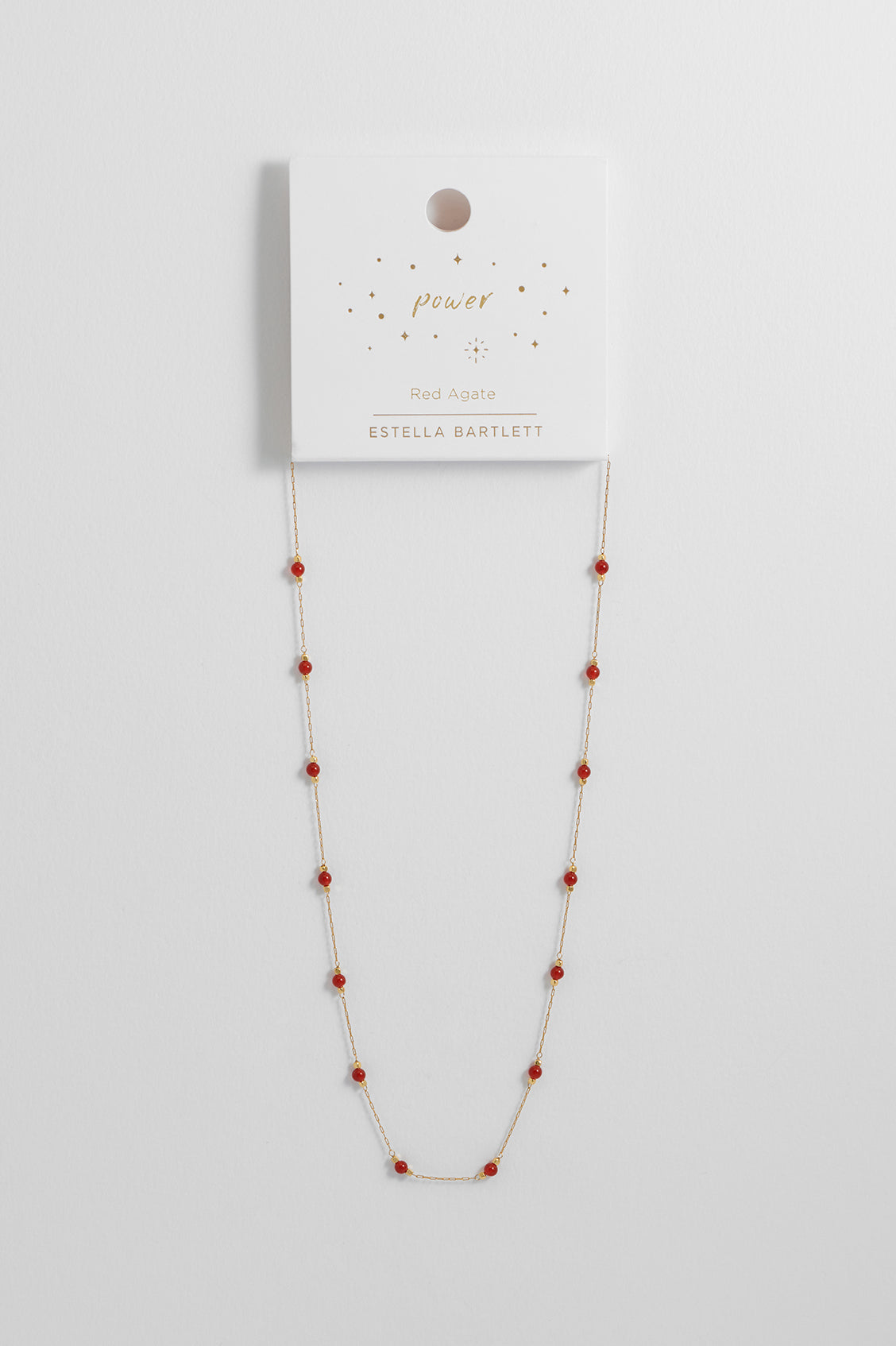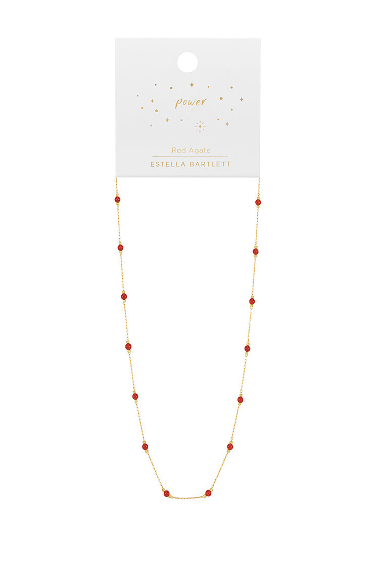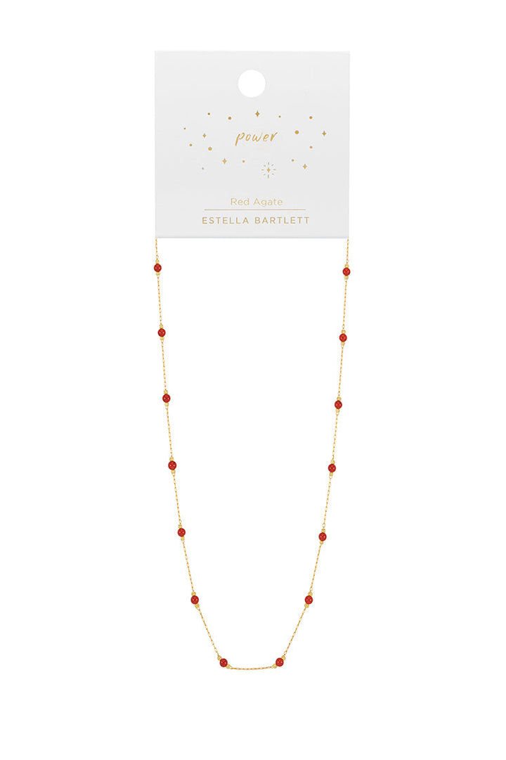This Wellness Red Agate Gemstone Bead Necklace by Estella Bartlett is a bold and spirited piece. The vibrant and fiery red agate gemstone is said to promote empowerment and strength. This necklace is a perfect accessory for those who want to add a striking pop of color and a powerful sense of self to their style.