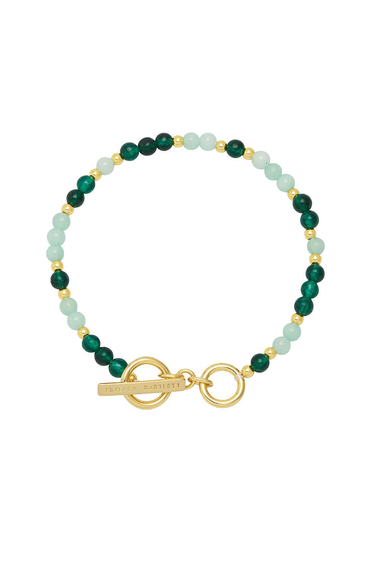 This T-Bar Beaded Bracelet by Estella Bartlett is a vibrant and playful accessory that adds a perfect pop of color. The mixed green jade semi-precious beads and modern T-bar link create a cheerful and unique design. This bracelet is perfect for brightening up your day and adding a stylish, colorful touch to your wrist.