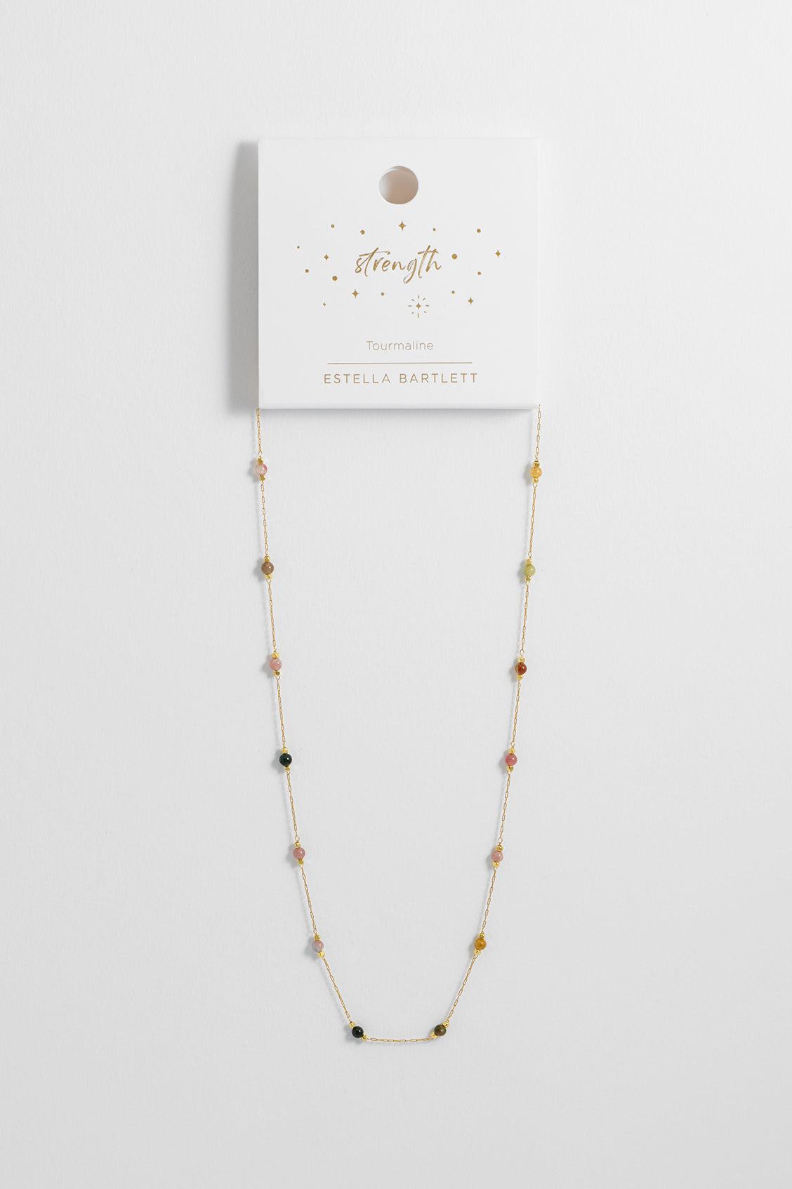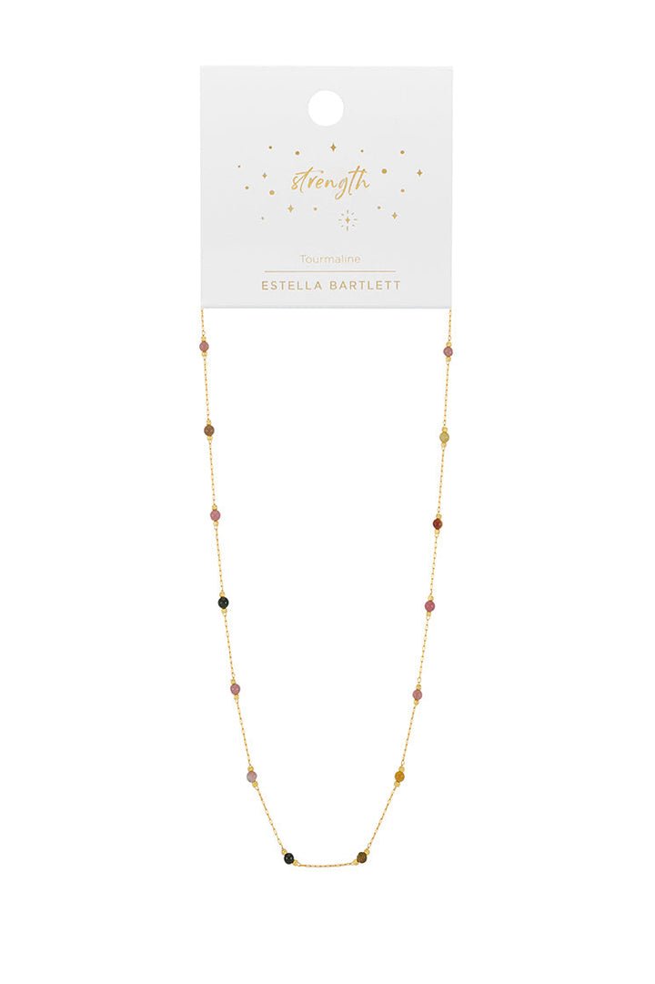 This Wellness Tourmaline Gemstone Bead Necklace by Estella Bartlett is a meaningful and vibrant piece. The natural tourmaline gemstones, known for their ability to transform negative energy into positive, add a beautiful pop of color to your look. This necklace is a perfect symbol of strength and positivity, making it a thoughtful gift for yourself or a loved one.