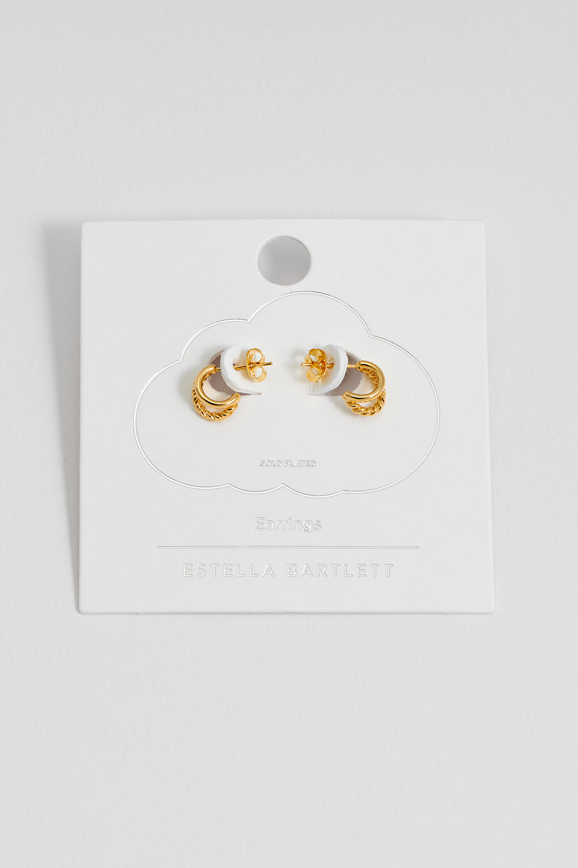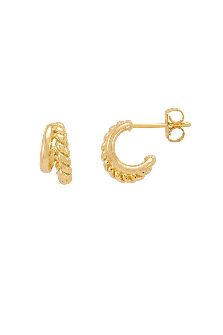 These Plain And Twist Double Hoop Earrings by Estella Bartlett are a fresh take on classic illusion hoops. The combination of a twisted gold hoop with a sleek, smaller plain hoop creates a subtle yet elegant design. These earrings are a versatile and chic finishing touch for any look, day or night.