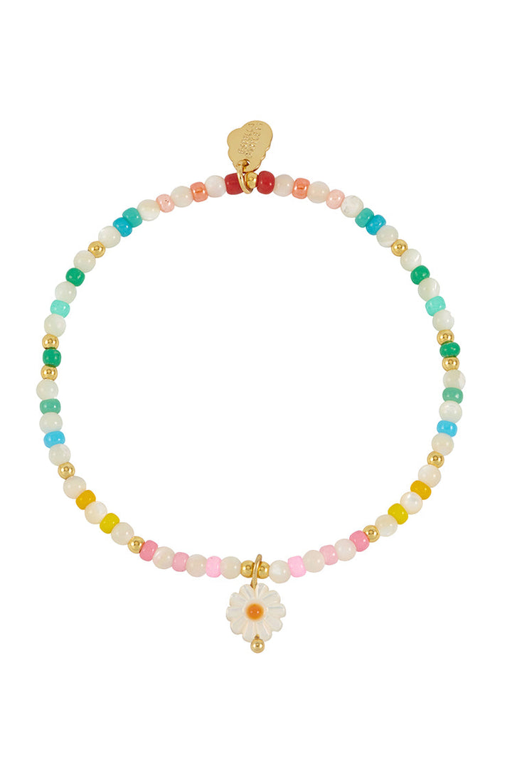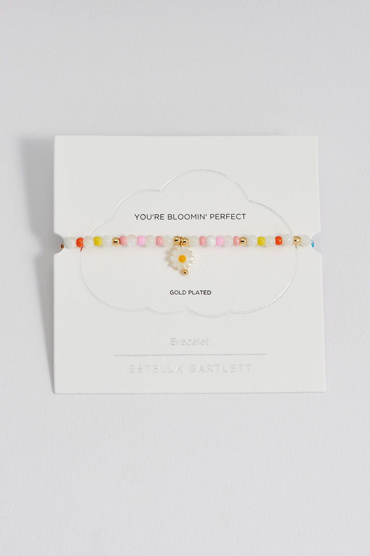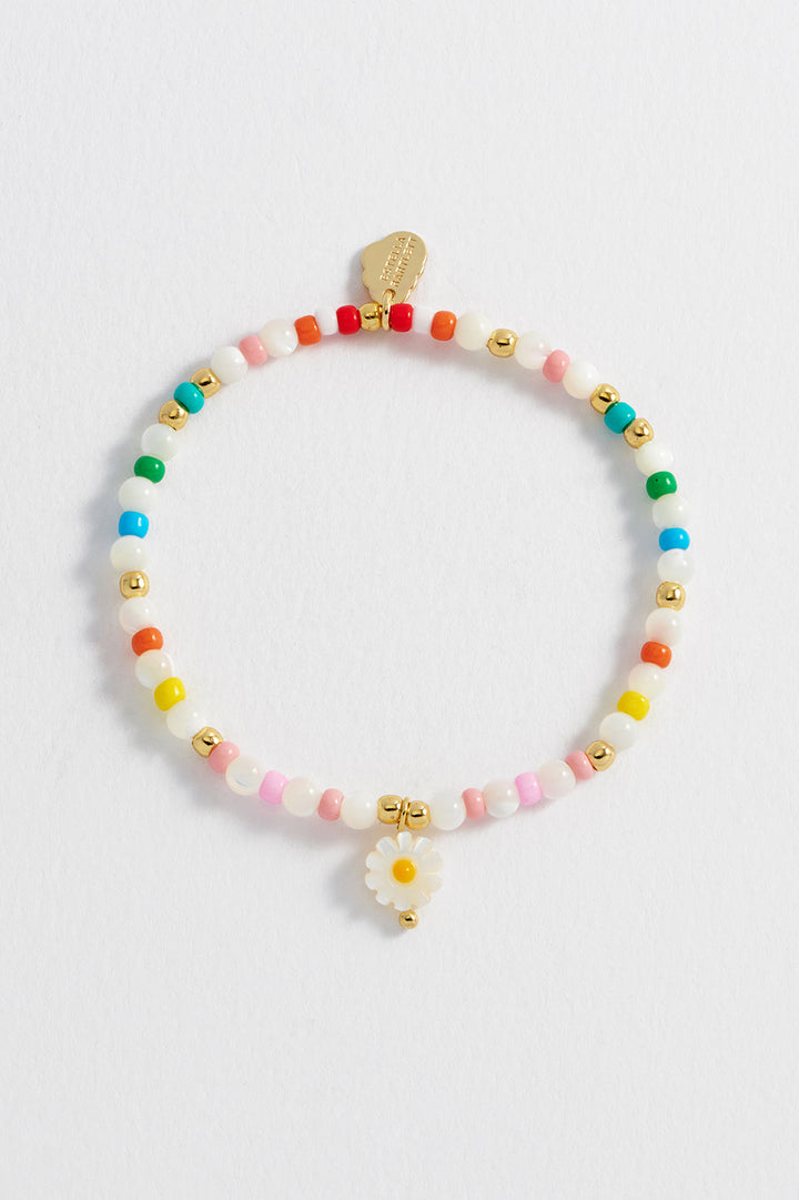 This Multi Gemstone Shell Flower Stretch Bracelet by Estella Bartlett adds a burst of natural beauty to your wrist. The vibrant mix of colorful gemstones and the delicate shell flower charm captures the essence of spring. This bracelet is a perfect way to infuse your look with fresh, cheerful energy.
