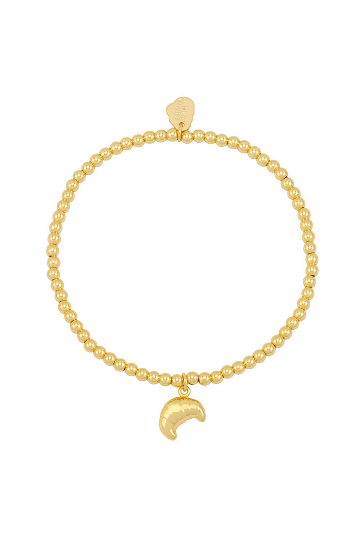 This bracelet features gold-plated beads and a croissant charm. The bracelet measures 16.5cm, and the charm measures approximately 0.6 x 0.6cm.