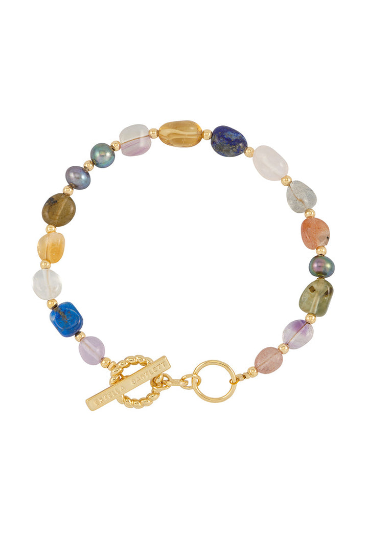 This bracelet is made with vivid gemstones and a T-bar closure. The chain measures 16-19cm.